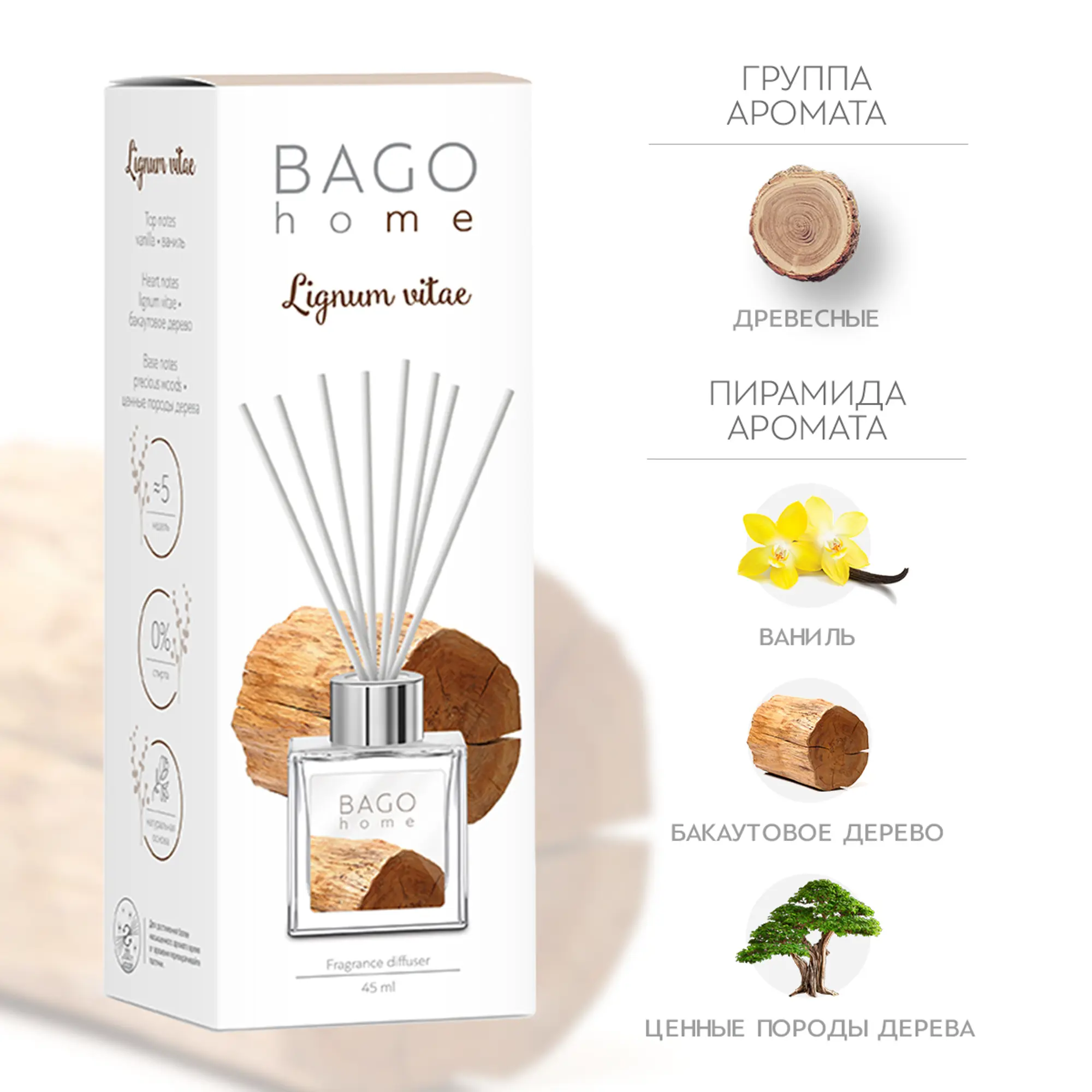 Ароматический диффузор Bago home Бакаутовое дерево 45 мл, Россия
