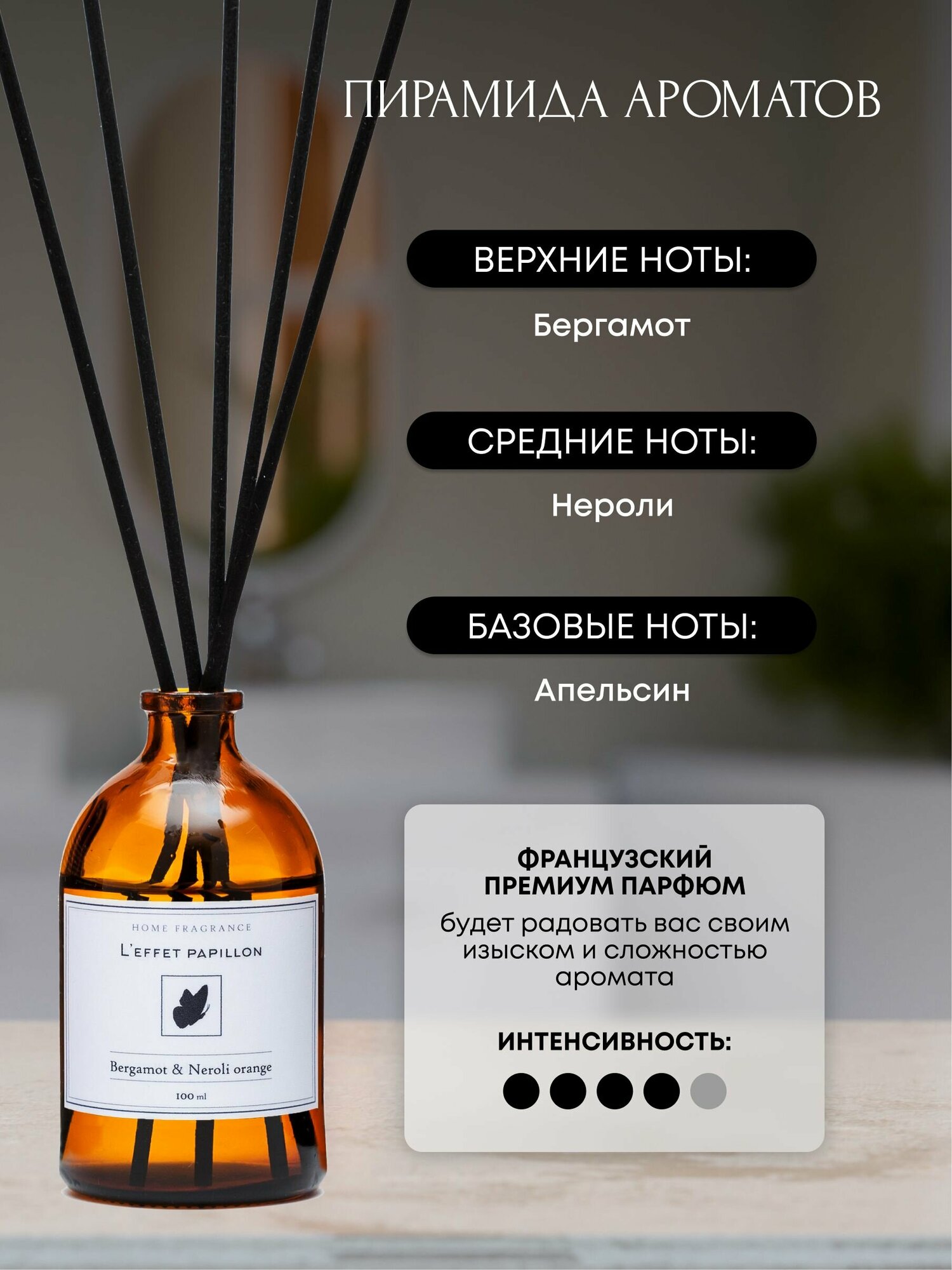 СохранитьДиффузор ароматизатор для дома с палочками Бергамот Апельсин нероли, 100 мл интересное: