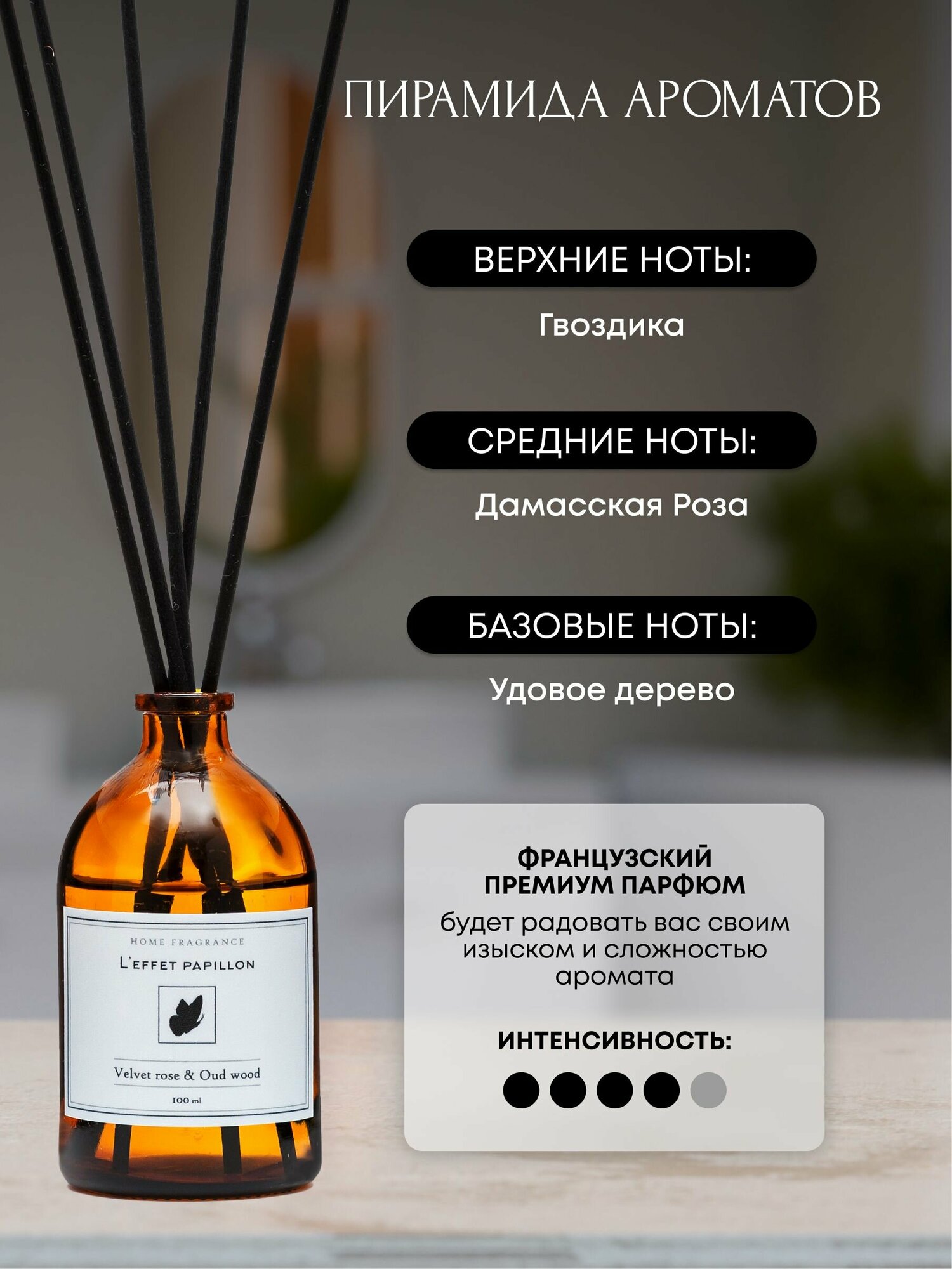 СохранитьДиффузор ароматизатор для дома с палочками Роза и Удовое дерево, 100 мл интересное: