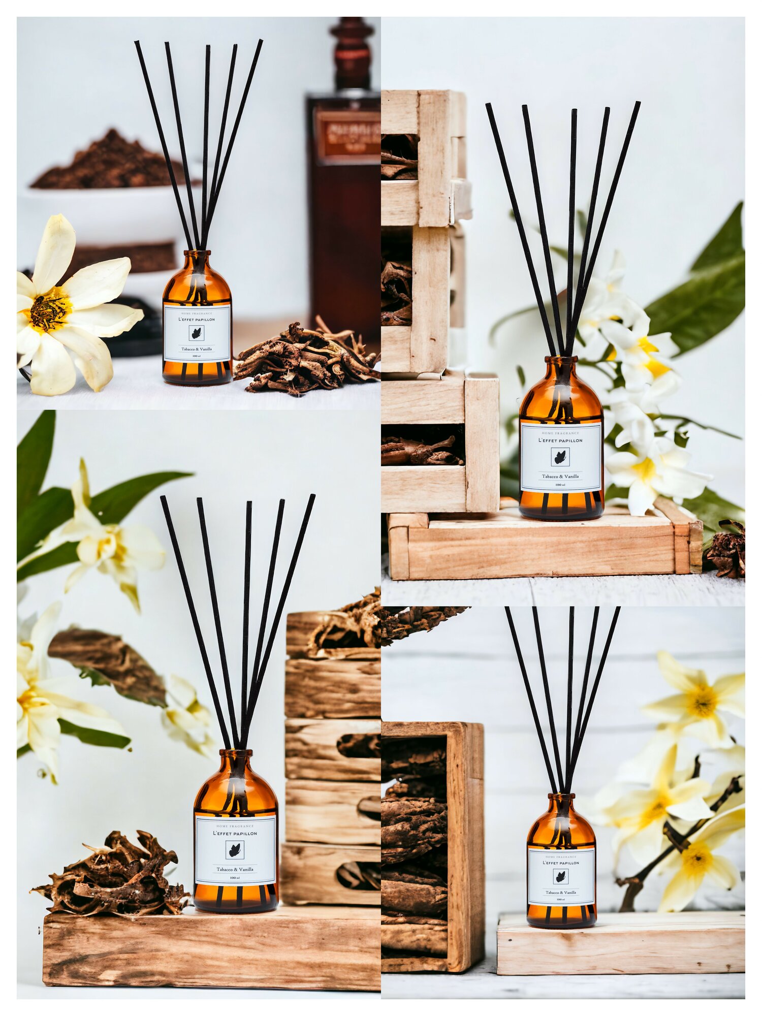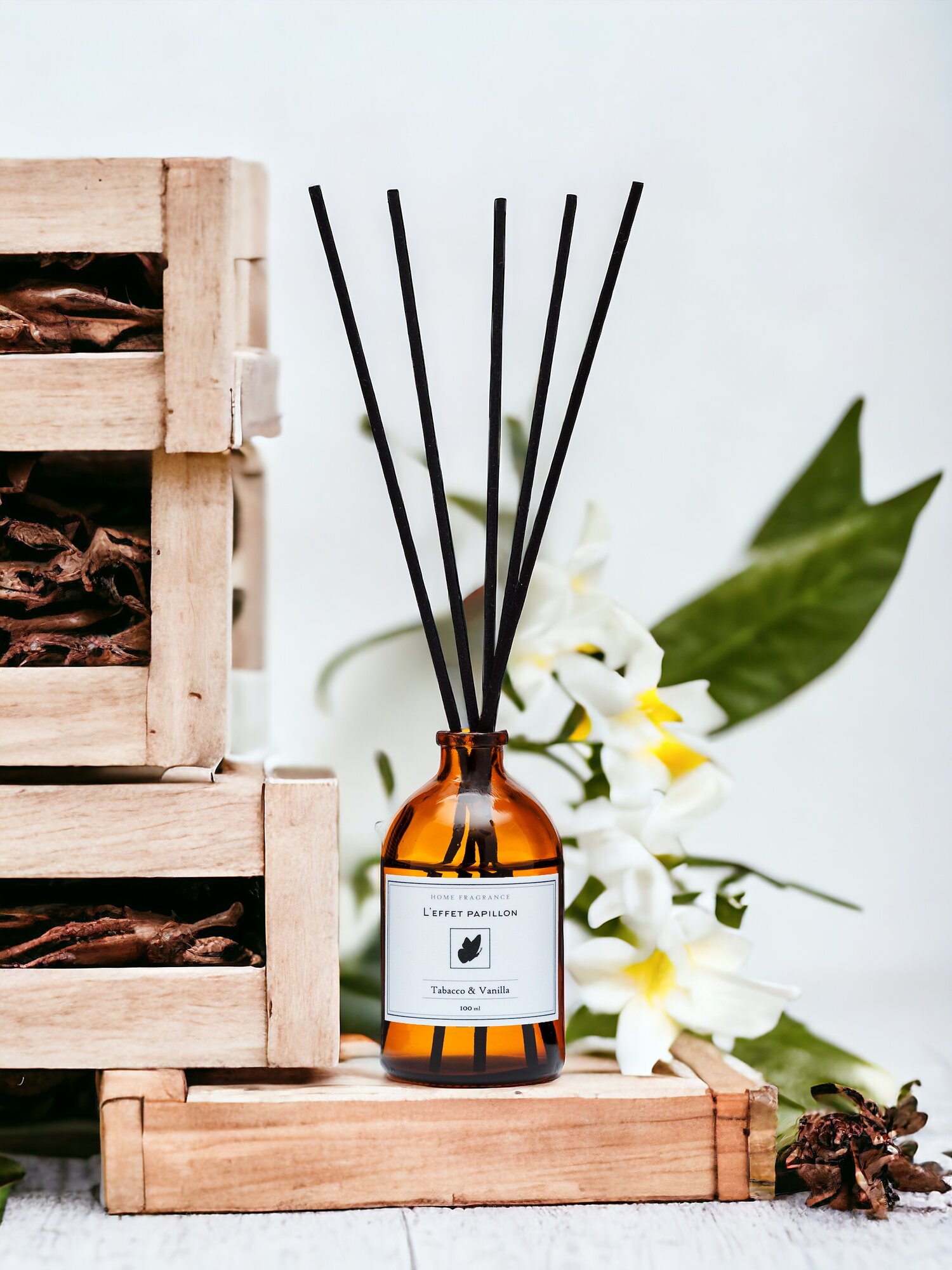 Диффузор ароматизатор для дома с палочками Leffet Papillon Ваниль (Vanilla Blend), 100 мл