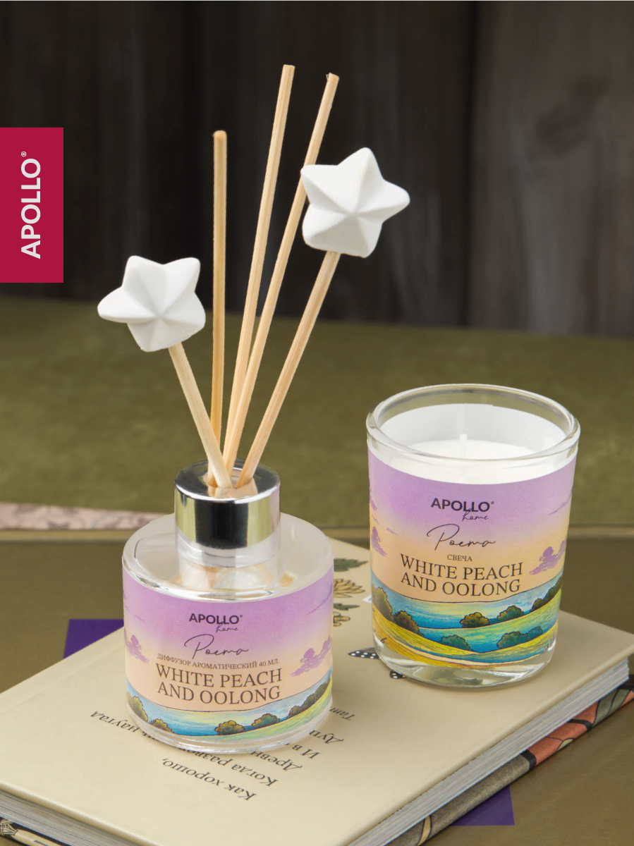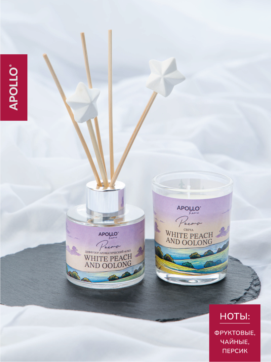 Подарочный набор для дома Apollo "Poema" персик и улун, аромадиффузор с палочками 40 мл и свеча интересное:
