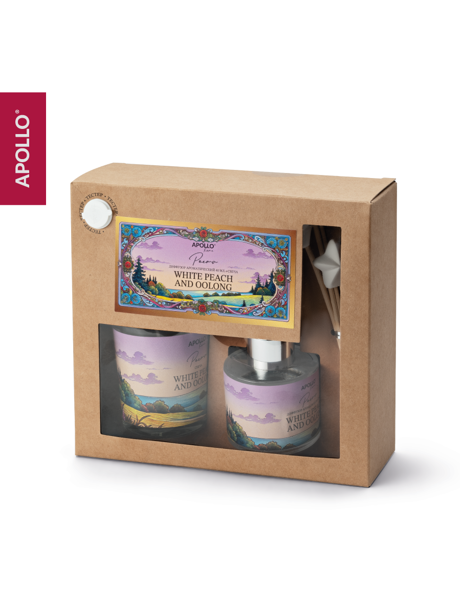 Купить Подарочный набор для дома Apollo "Poema" персик и улун, аромадиффузор с палочками 40 мл и свеча