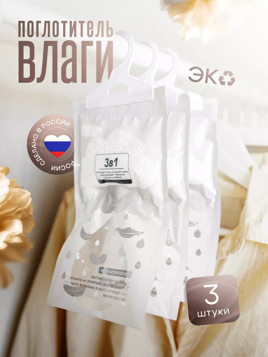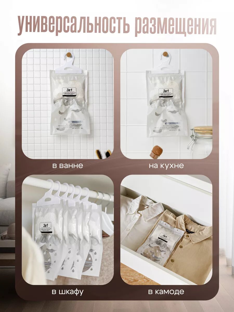 Поглотитель влаги и запаха, "ВлагоБлок", универсальный, для ванной, туалета, салона авто, набор 3 штуки интересное:
