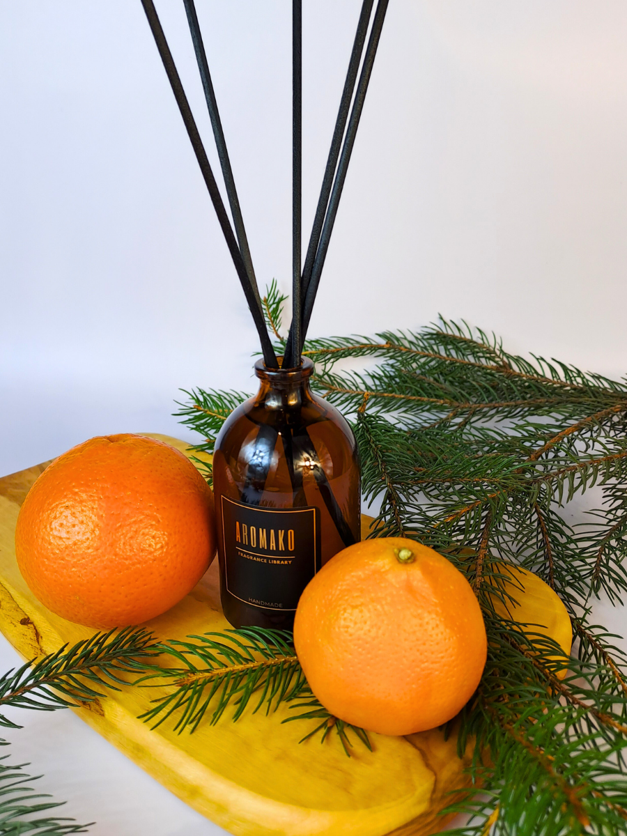 Ароматический диффузор с палочками Ёлка и мандарин 100 мл AROMAKO, ароматизатор для дома и офиса, парфюм для дома