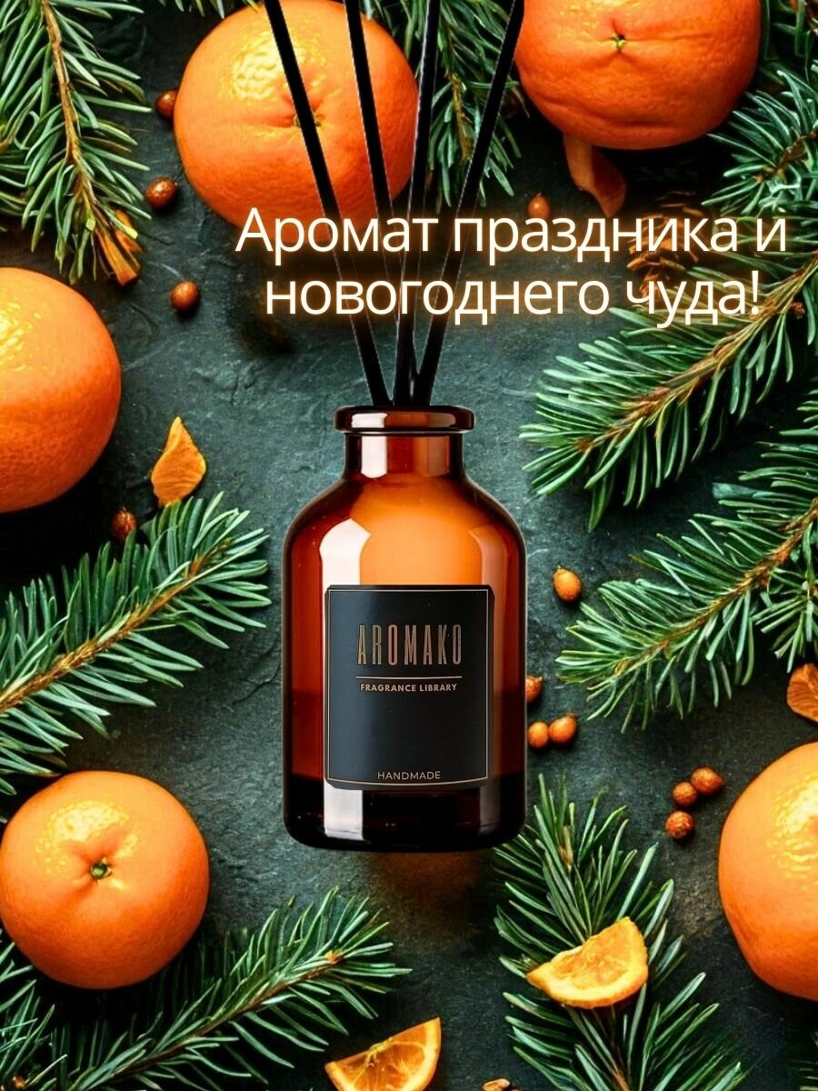 Аромадиффузор с палочками Ёлка и мандарин 50 мл AROMAKO, ароматизатор для дома и офиса, парфюм для дома интересное: