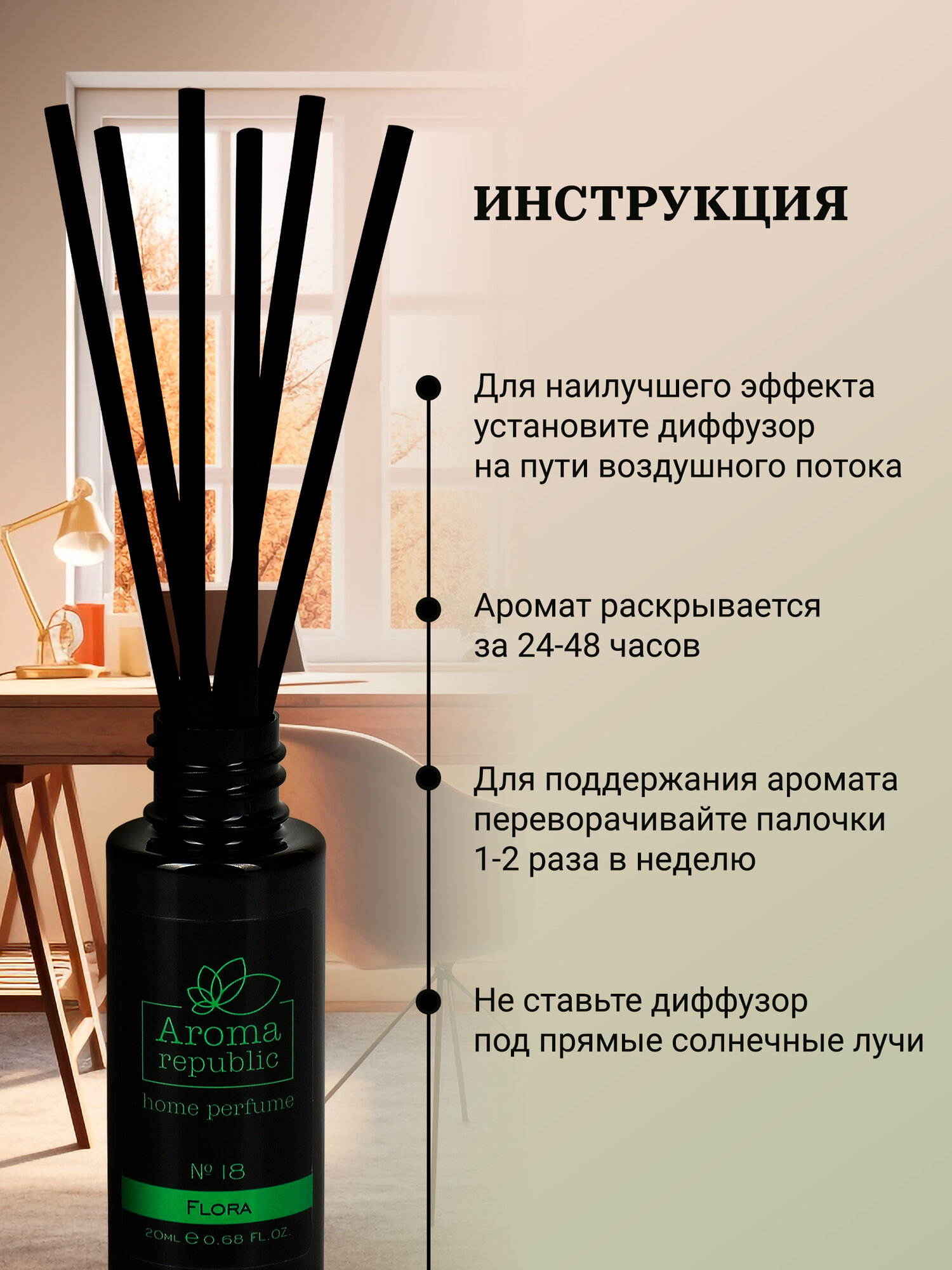 Диффузор ароматический AROMA REPUBLIC №18 "Flora", для комнаты, ванны, с палочками, 20мл интересное: