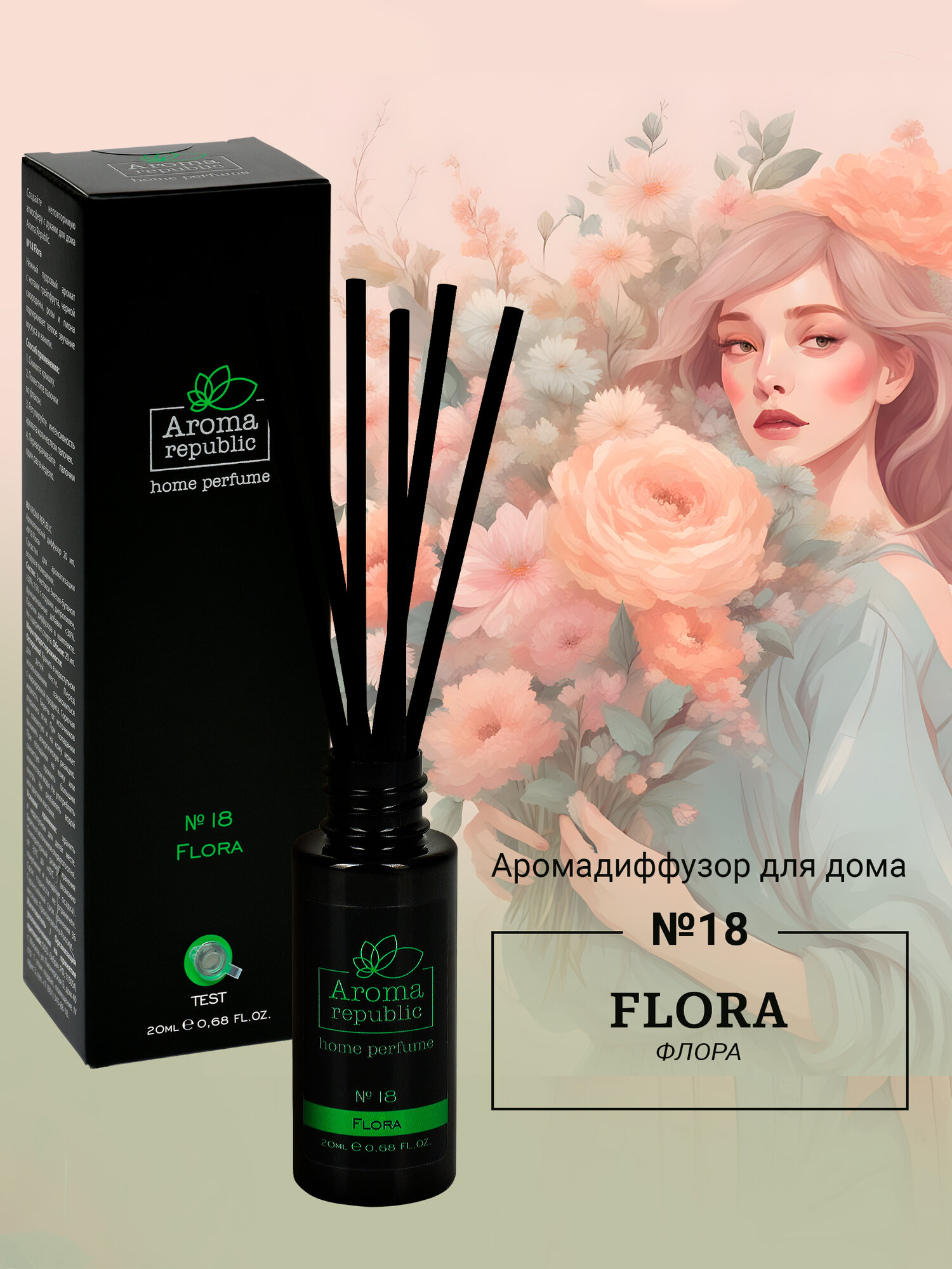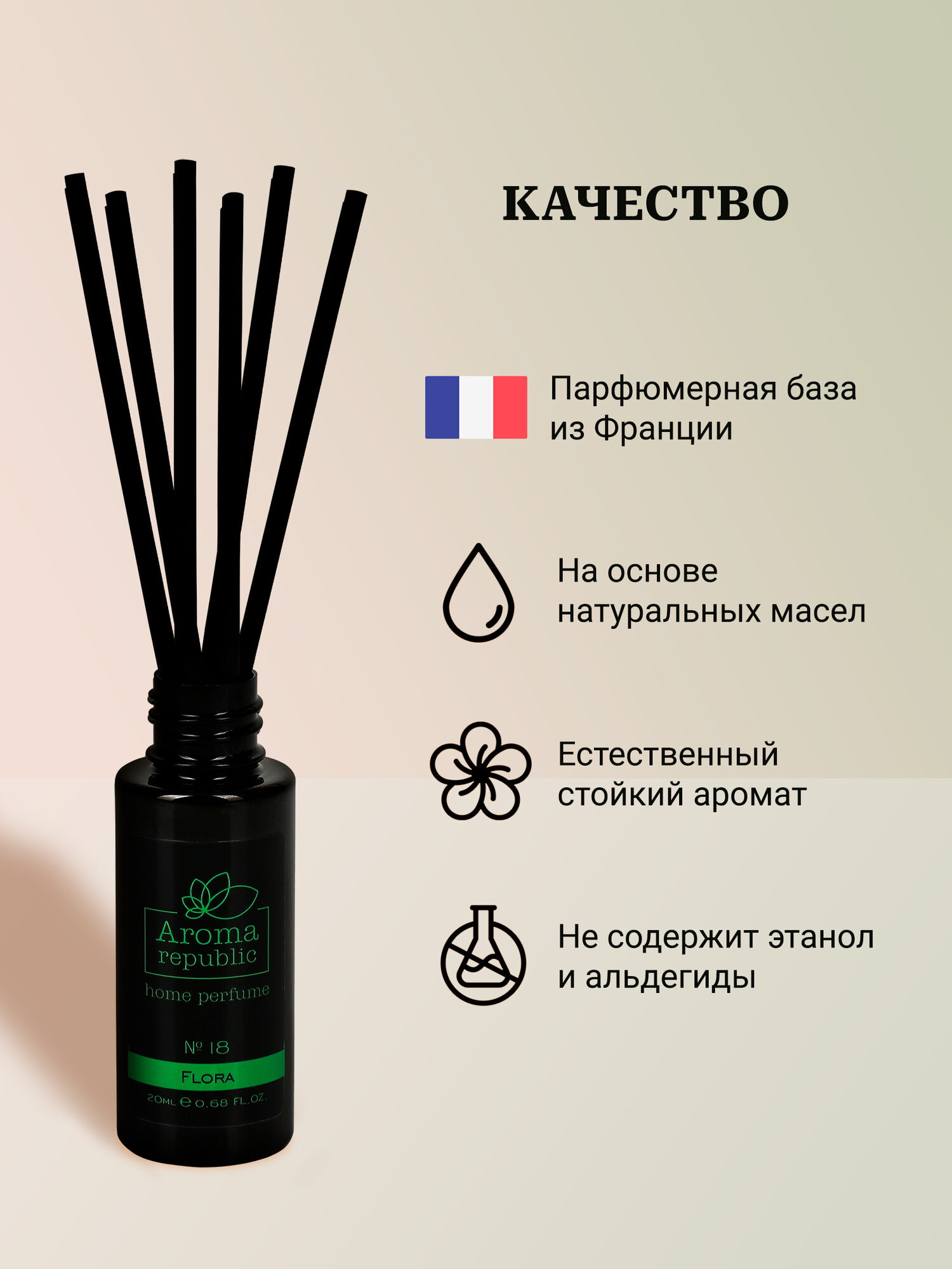 Купить Диффузор ароматический AROMA REPUBLIC №18 "Flora", для комнаты, ванны, с палочками, 20мл