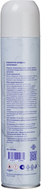 Освежитель воздуха Luscan 330мл Антитабак сухое распыл - 12 ШТ.