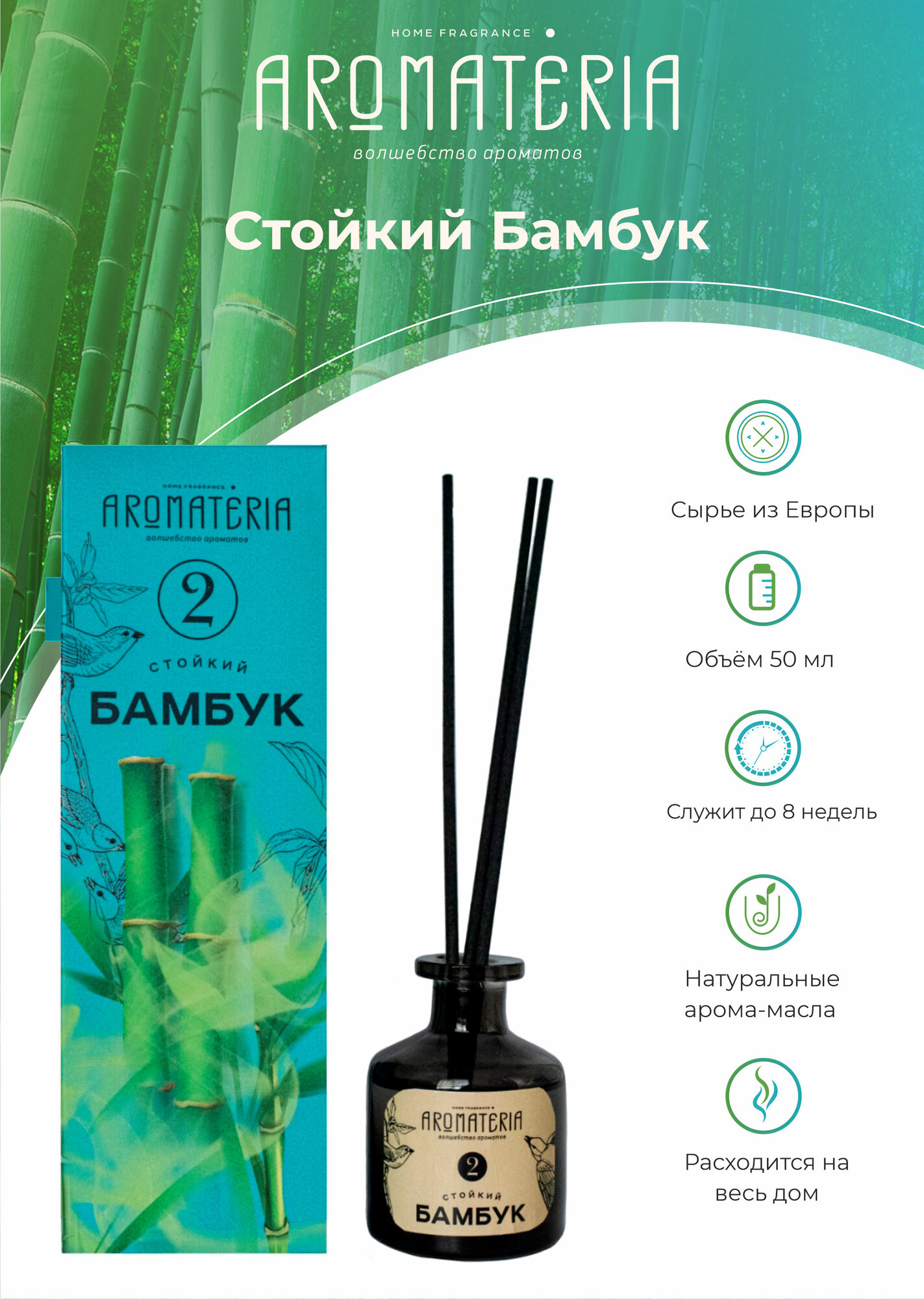 Купить Диффузор для дома "Стойкий Бамбук" Aromateria, 50 мл. / ароматизатор