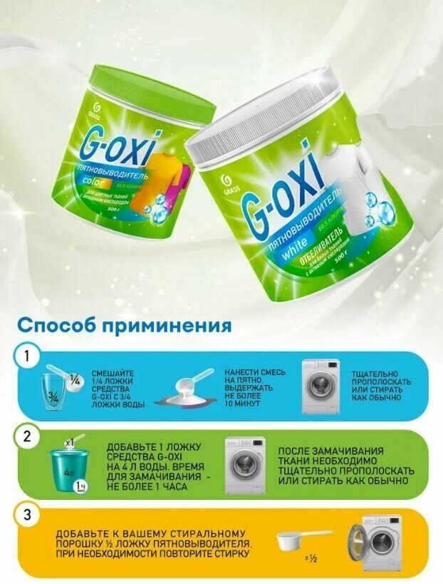 Пятновыводитель-отбеливатель Grass G-Oxi для белых вещей с активным кислородом, 500г . интересное: