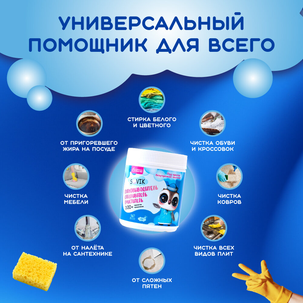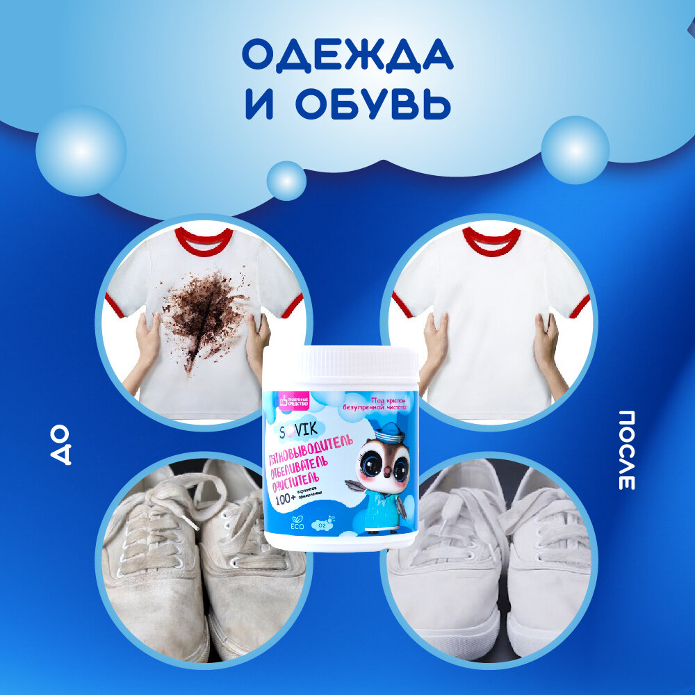 Купить Пятновыводитель "Совик" - кислородный пятновыводитель для любых пятен на одежде