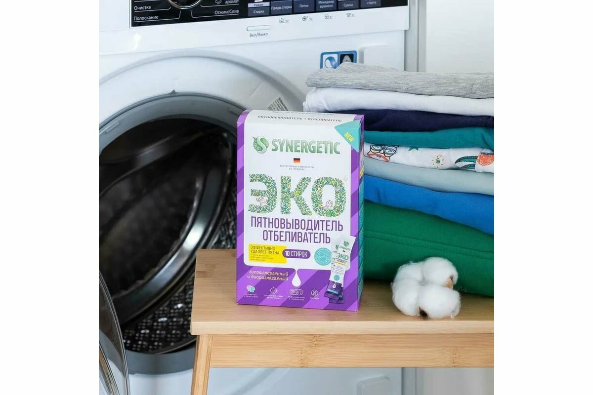 Synergetic Биоразлагаемый гипоаллергенный отбеливатель- пятновыводитель с активным кислородом 10 стиков, 10х25г интересное: