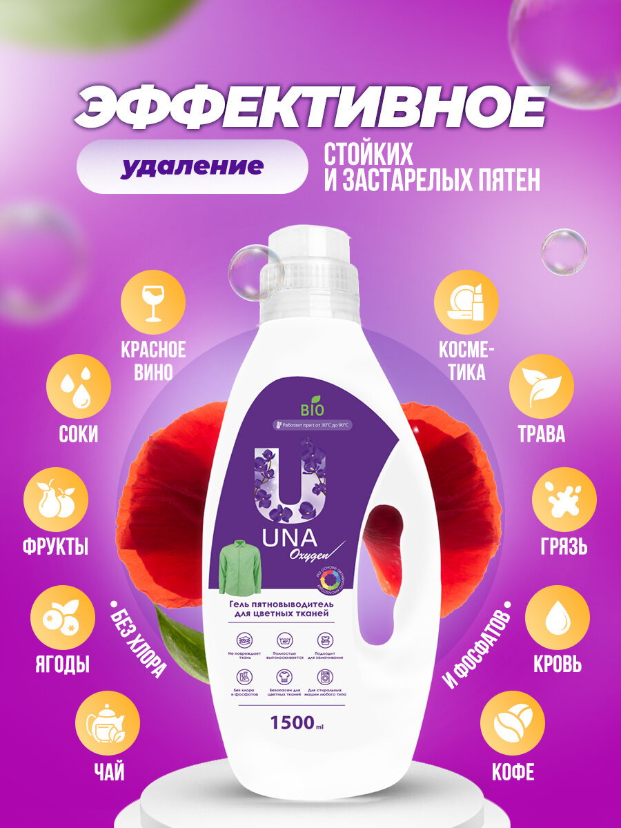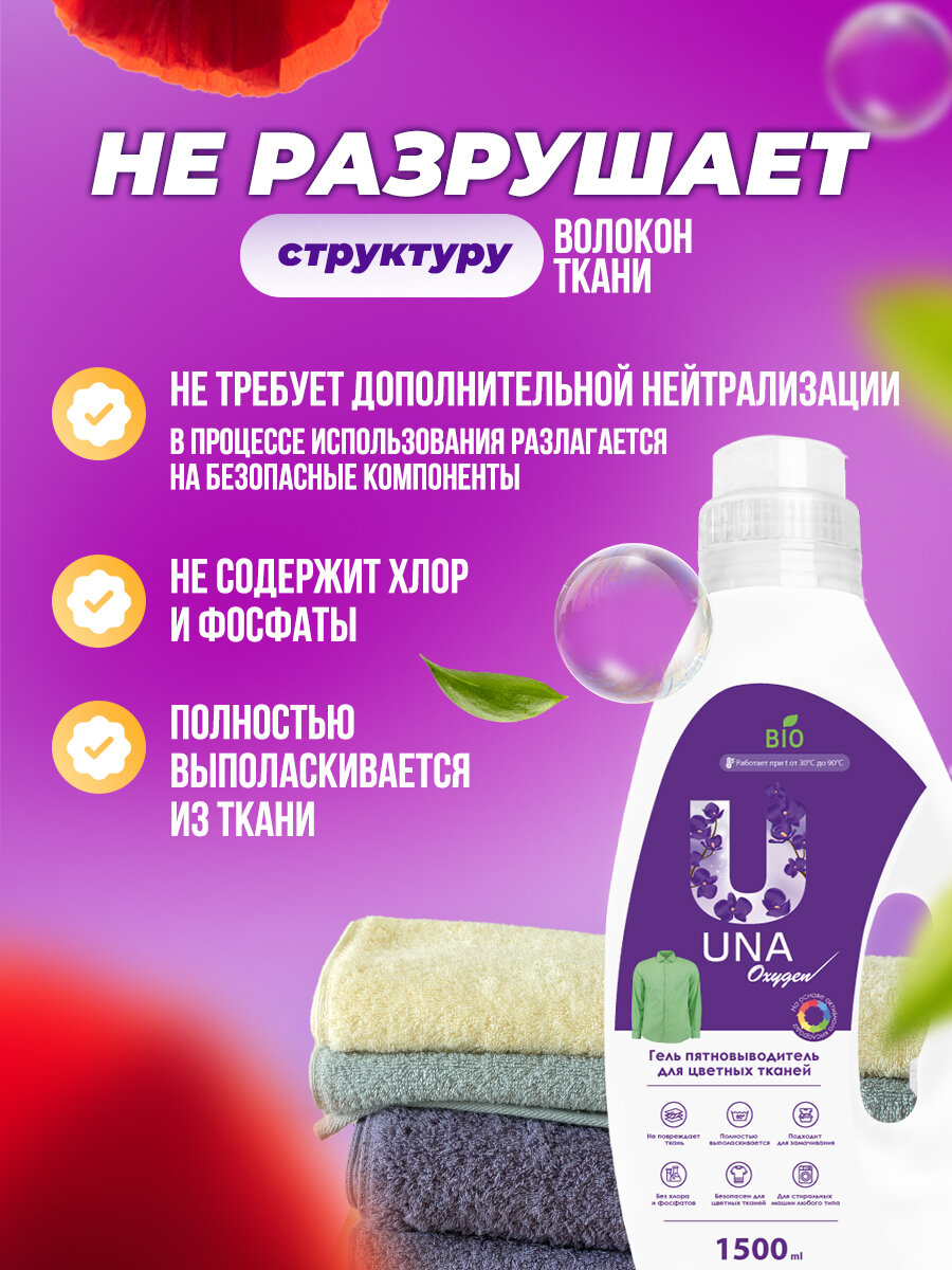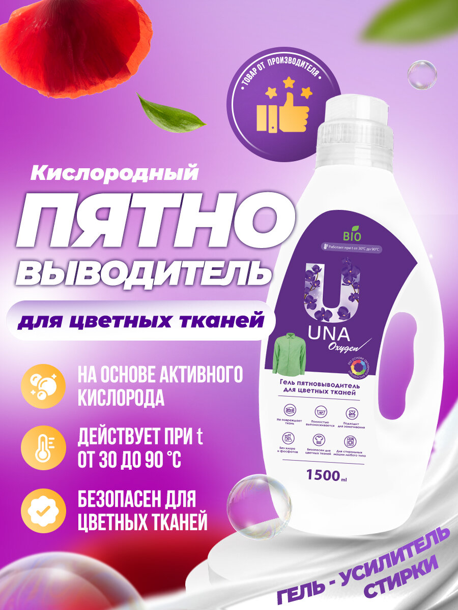 UNA / Пятновыводитель и усилитель стирки для цветного белья, 1.5л интересное: