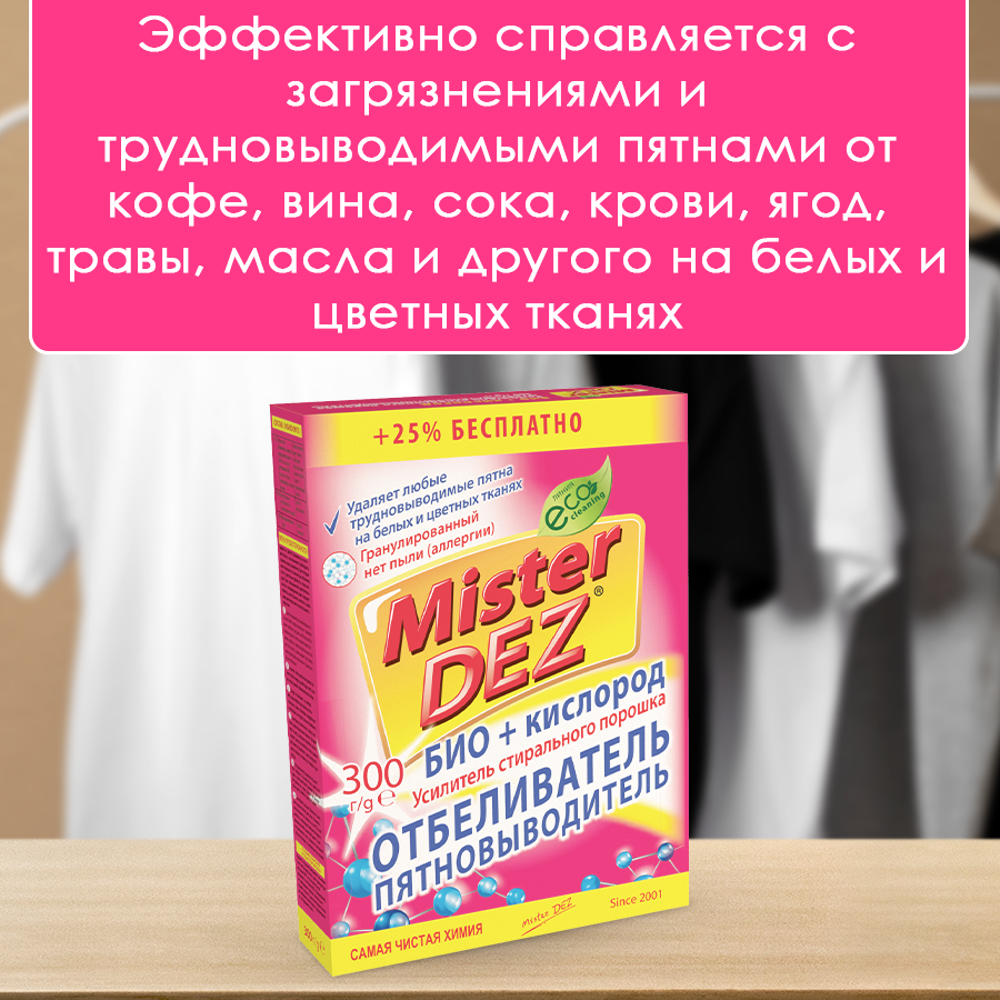 Купить Усилитель стирального порошка Mister Dez Eco-Cleaning отбеливатель активный кислород, 300 г