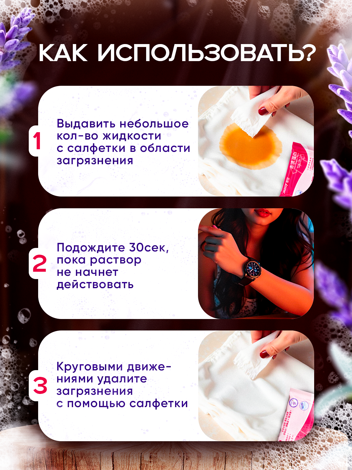 Купить Пятновыводящие влажные салфетки от пятен, для всех видов ткани, без спирта, 10шт