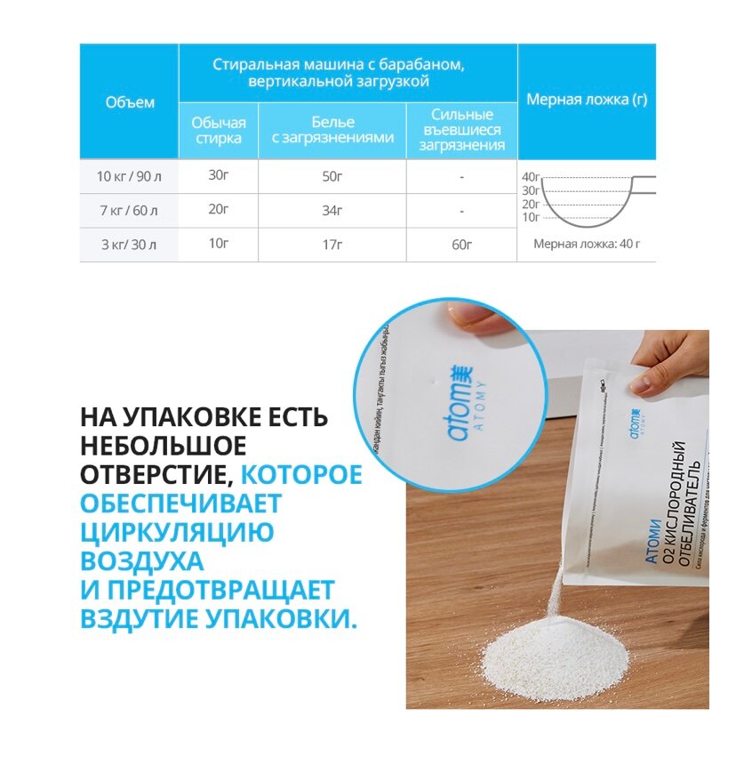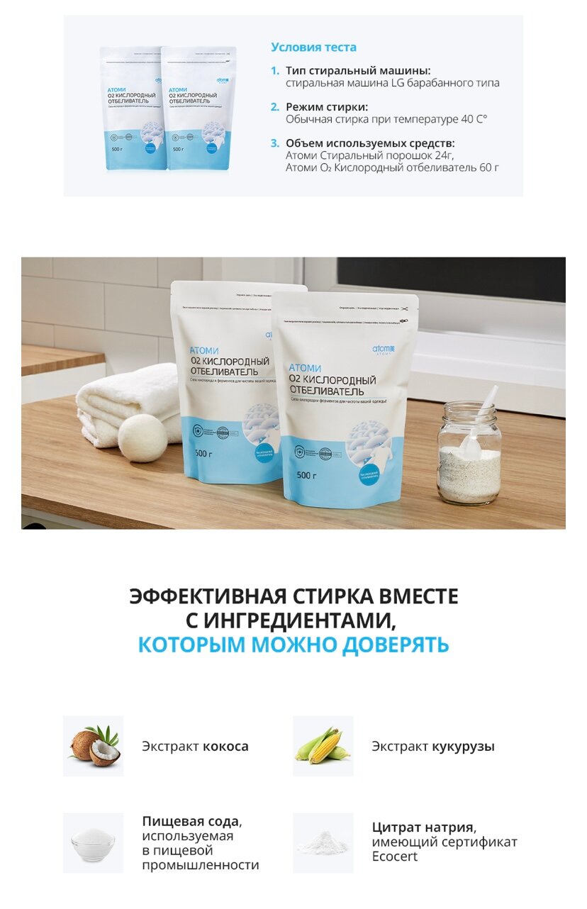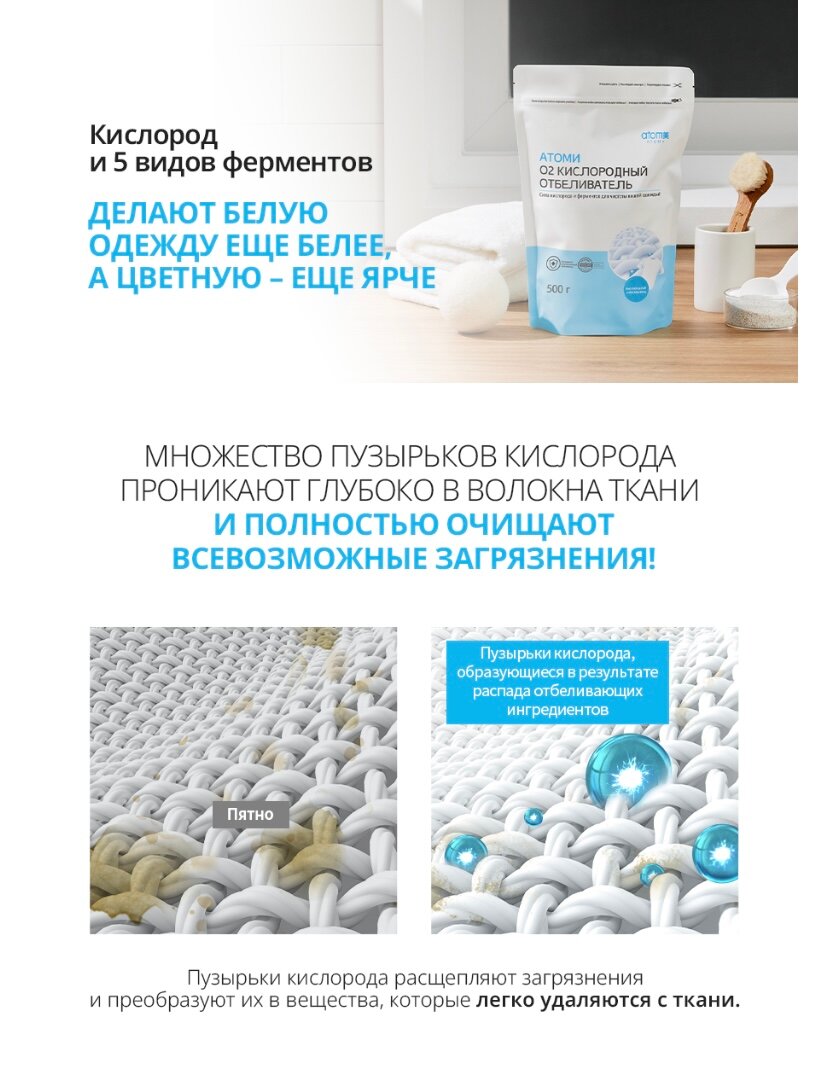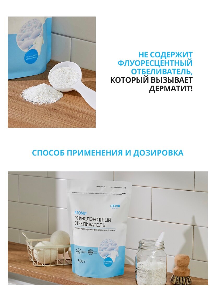 Кислородный отбеливатель для белых и цветных тканей, Атоми/Atomy, 500 гр, Корея интересное: