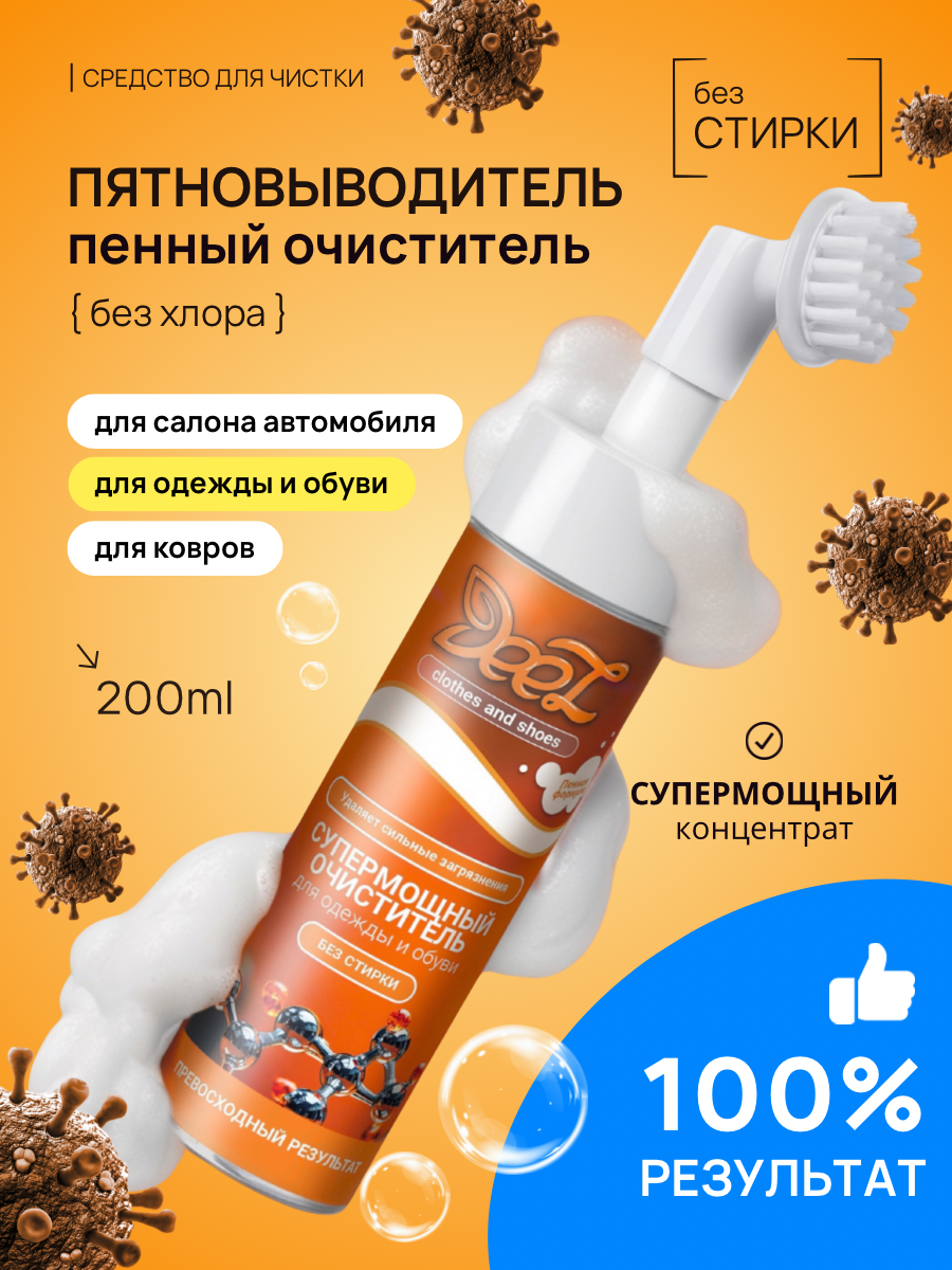 Пятновыводитель без стирки DEEZ супермощный для одежды и обуви, без хлора, 200мл интересное:
