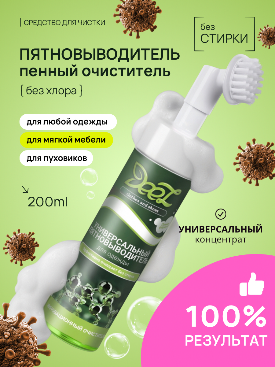Пятновыводитель DEEZ универсальный, средство для чистки без стирки, без хлора, 200мл интересное: