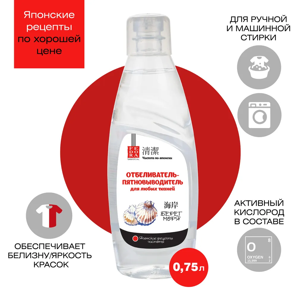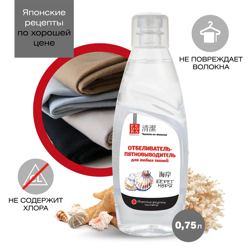 Отбеливатель-пятновыводитель Fedora Берег моря для любых тканей, 750 мл интересное: