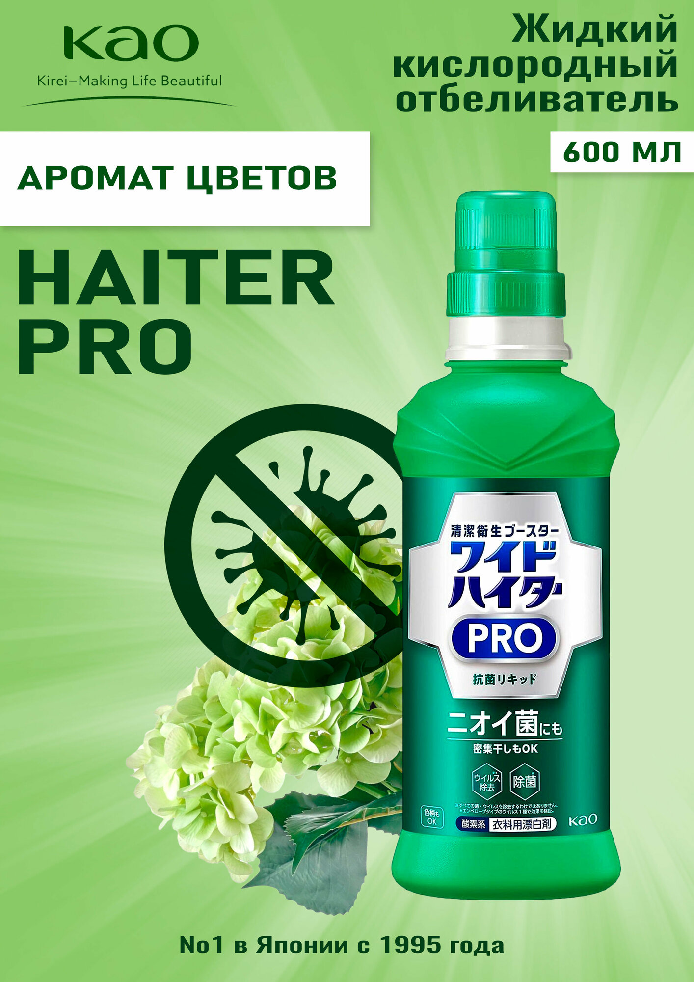 КAO Жидкий кислородный отбеливатель «Wide Haiter PRO» (с антибактер. и противовирус. эффектом) 600мл интересное: