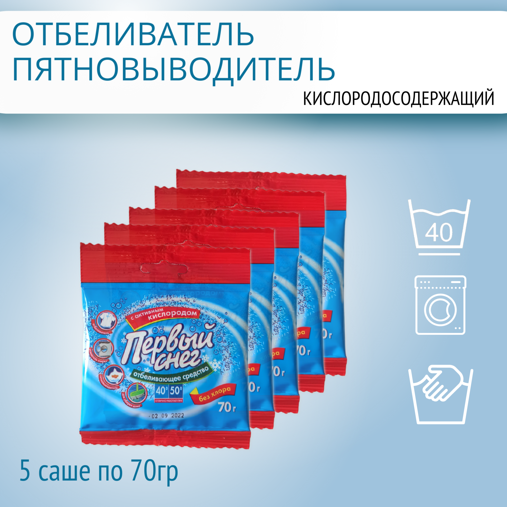 Кислородосодержащий Отбеливатель Пятновыводитель Усилитель стирки "Первый снег", порошок, 5 саше по 70гр. интересное: