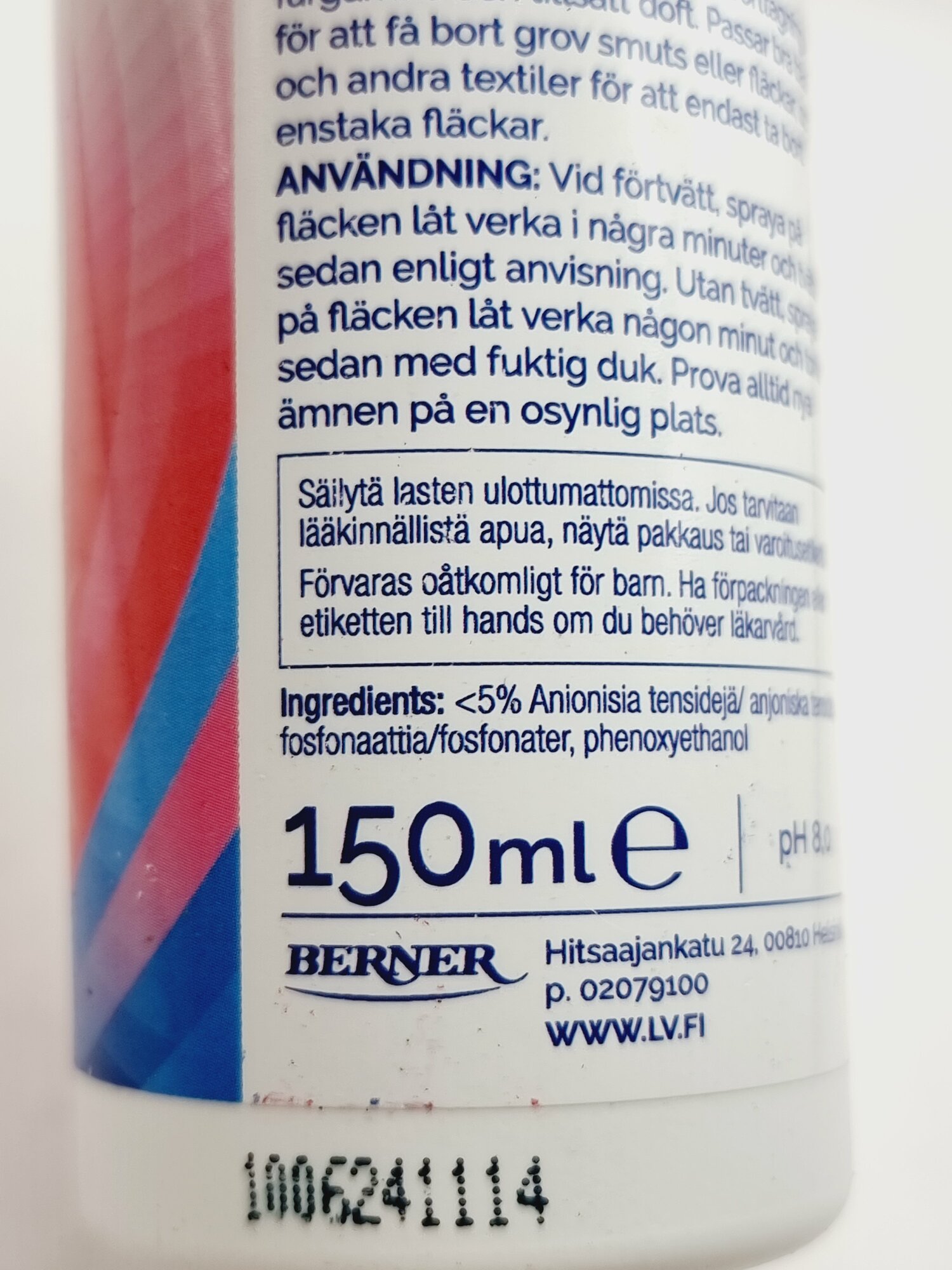 LV спрей пятновыводитель без отдушки 2 в 1 150 мл (из Финляндии) интересное: