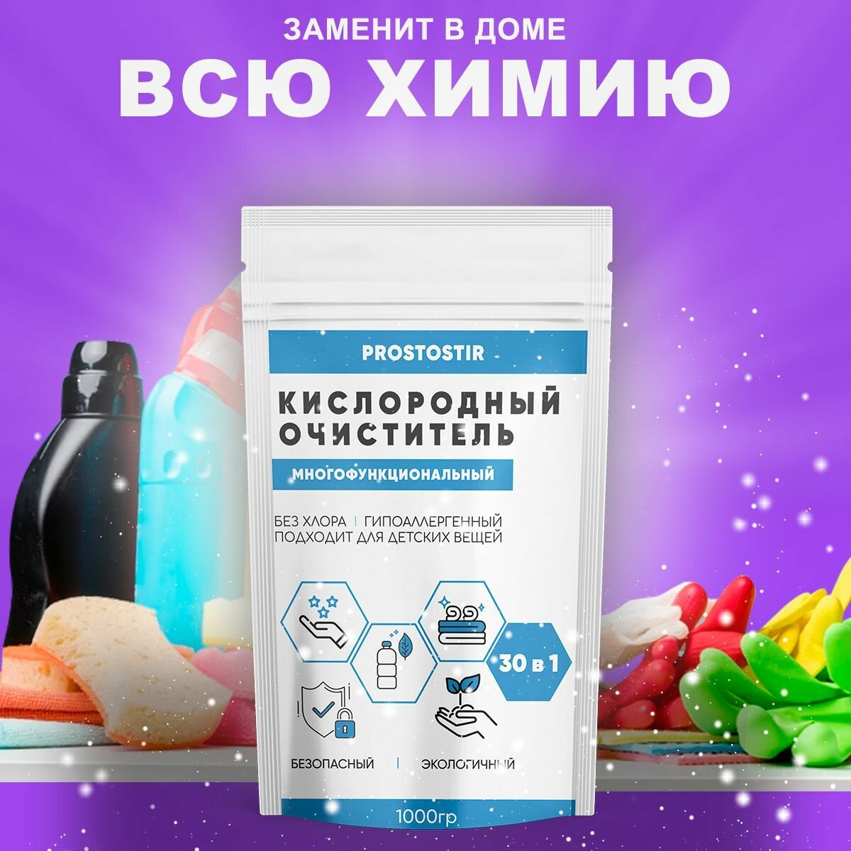 Чистящий порошок, кислородный отбеливатель, без хлора, 1 упаковка