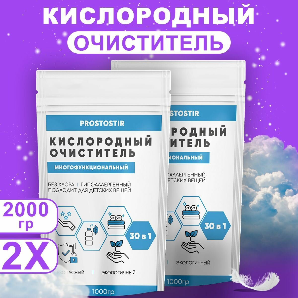 Чистящий порошок, кислородный отбеливатель, без хлора, 2 упаковки интересное: