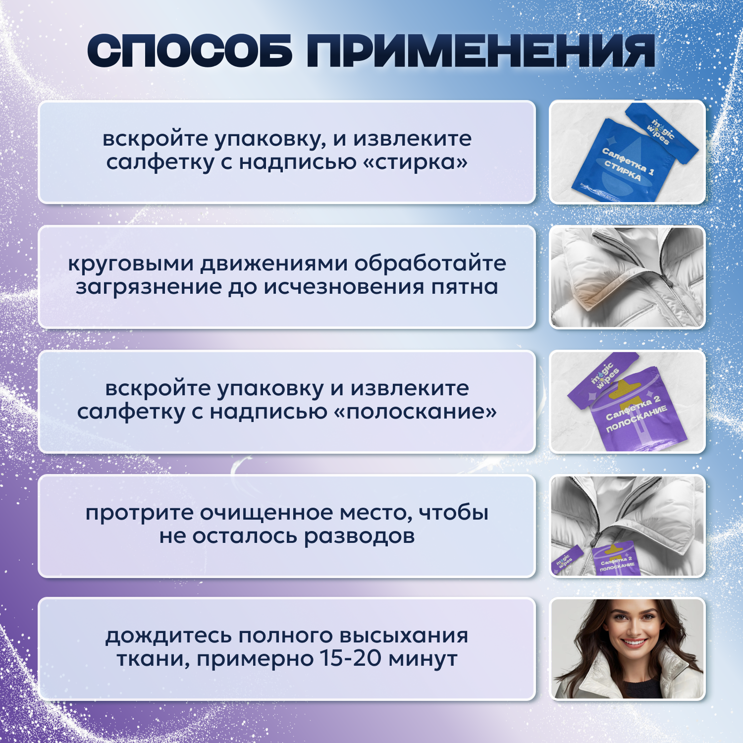 MAGIC WIPES Салфетки для удаления пятен с одежды 42 шт, пятновыводящие интересное: