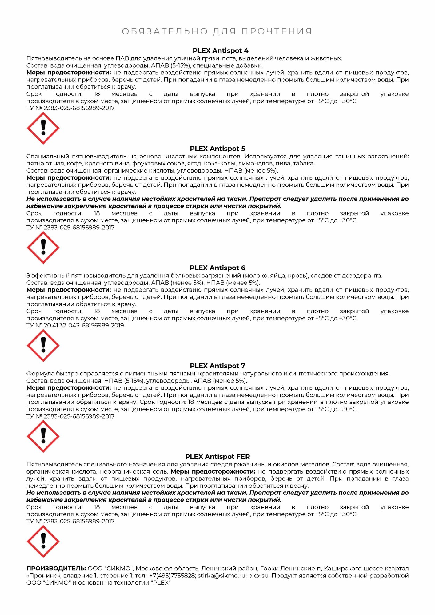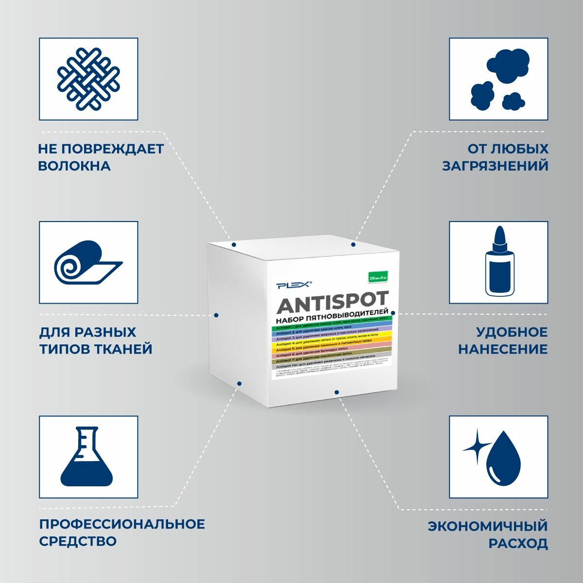 Набор пятновыводителей для тканей PLEX Antispot (8 штук по 250 мл) интересное: