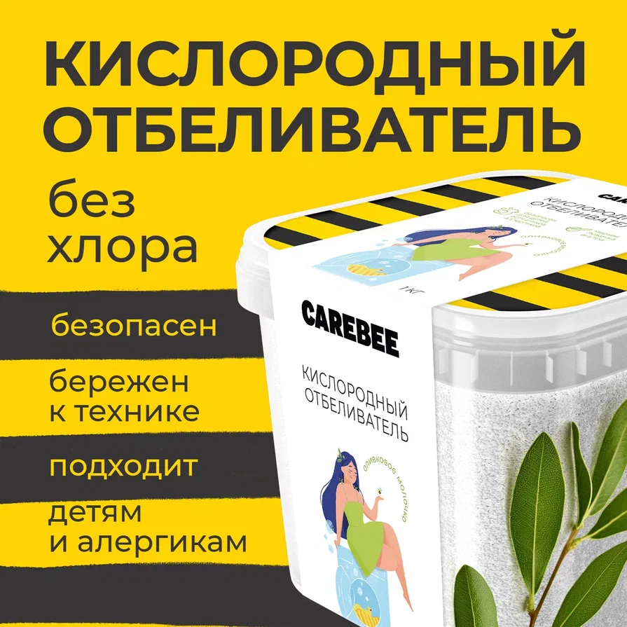 Купить Кислородный отбеливатель для всех типов тканей без хлора "CAREBEE" Оливковое молочко 1 кг 100% концентрат
