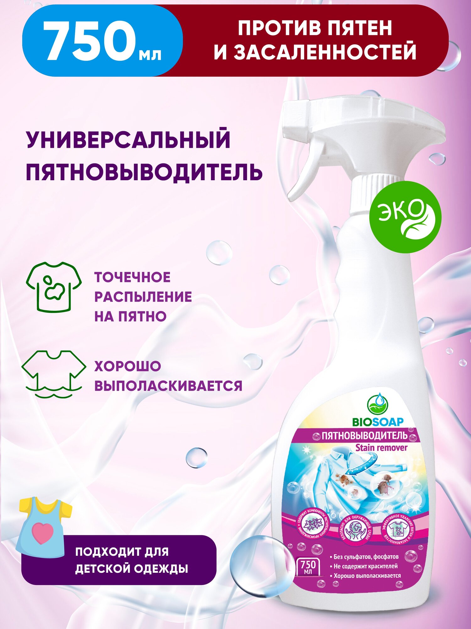 Пятновыводитель Biosoap Stain Remover, 750 мл интересное: