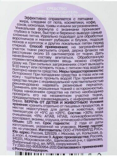 Спрей пятновыводитель " Пятноль ". интересное: