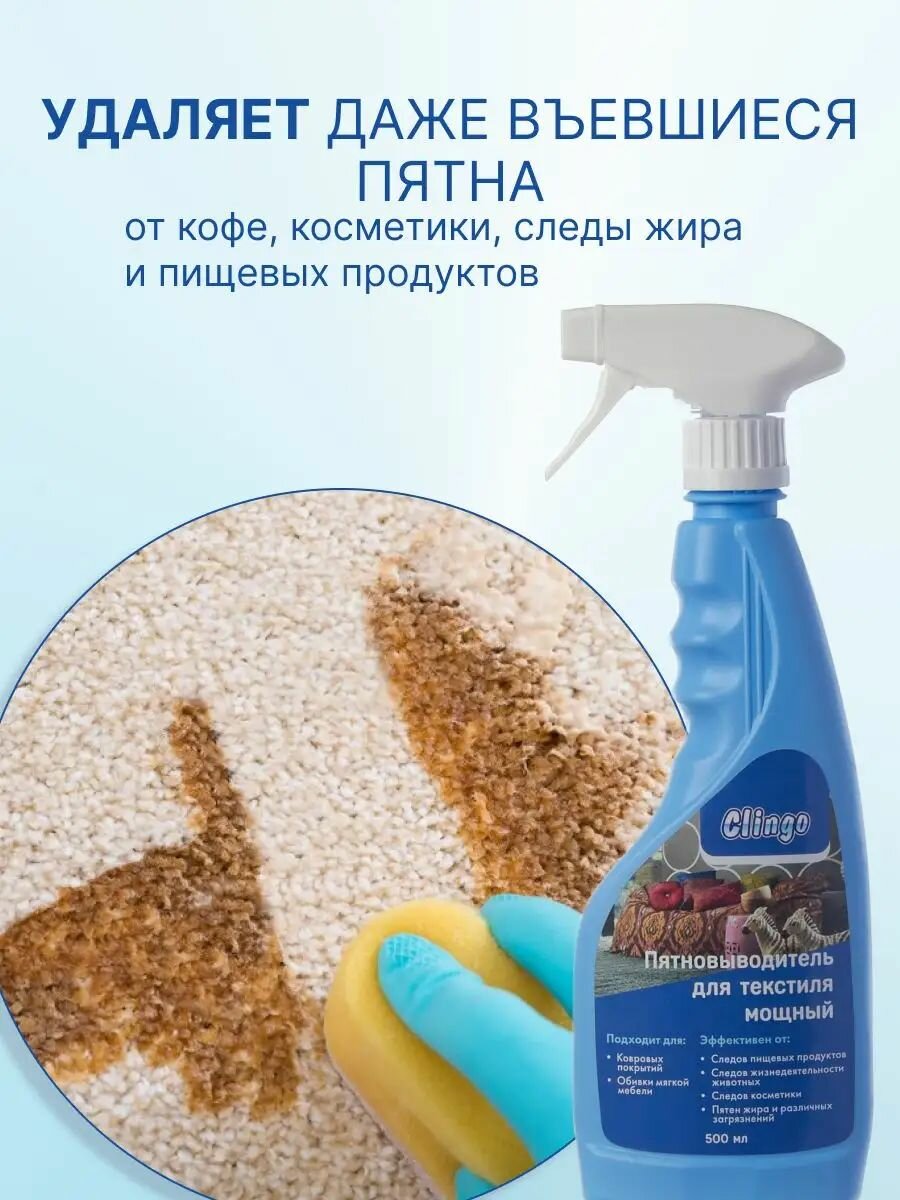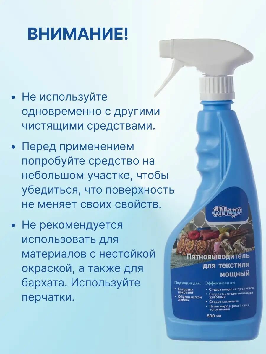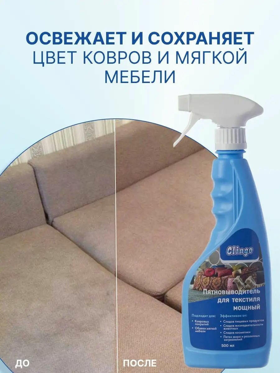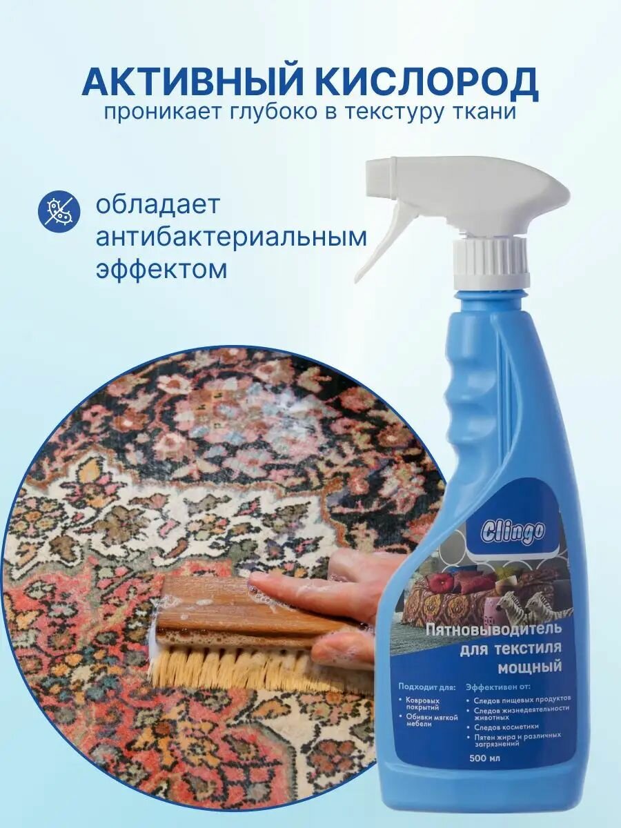 Мощный кислородный пятновыводитель для чистки ковров и мягкой мебели Clingo 500мл, спрей средство для чистки матрасов, паласов, тканей интересное: