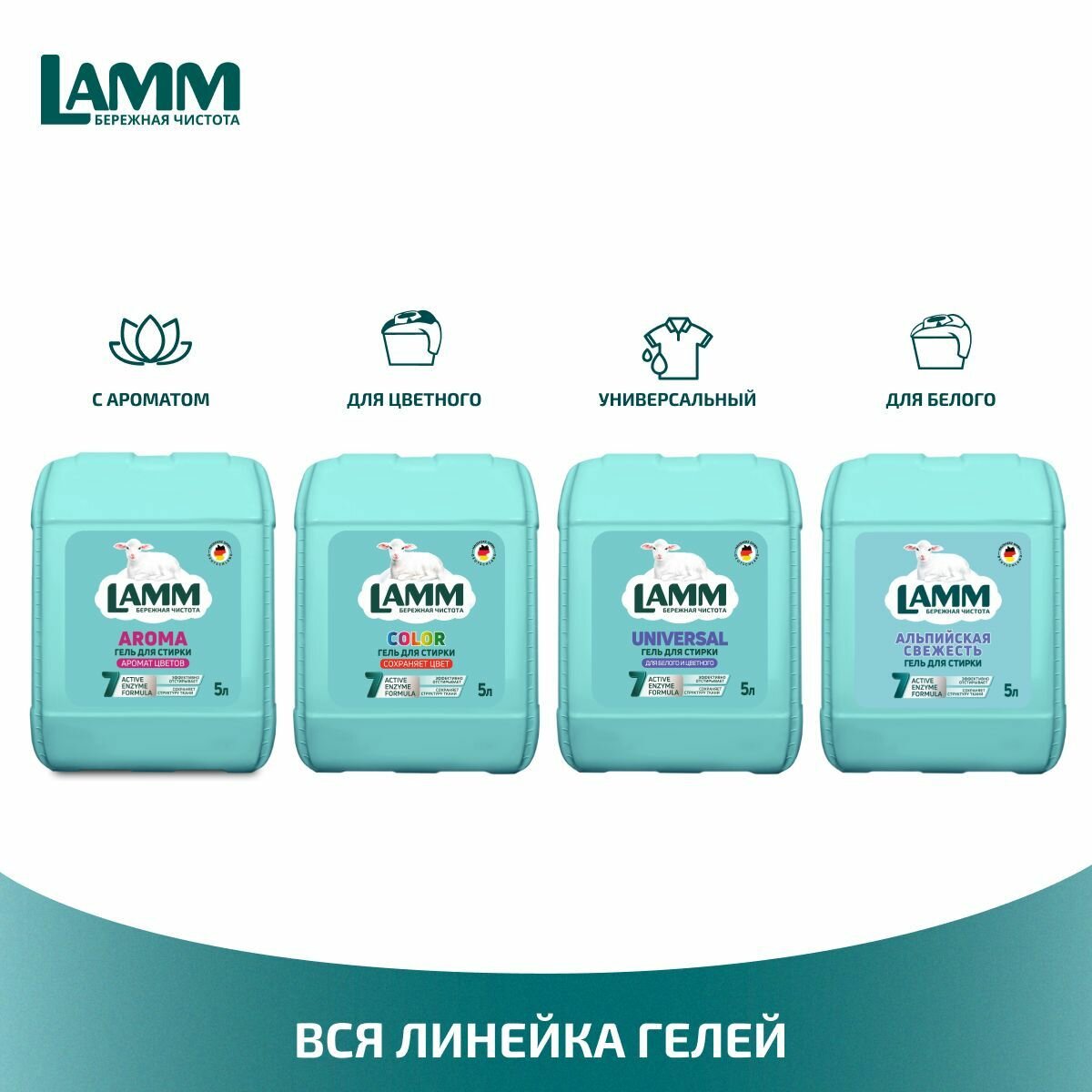 LAMM Aroma Гель для Стирки Белого и Цветного Белья, Бесфосфатный, 5 л