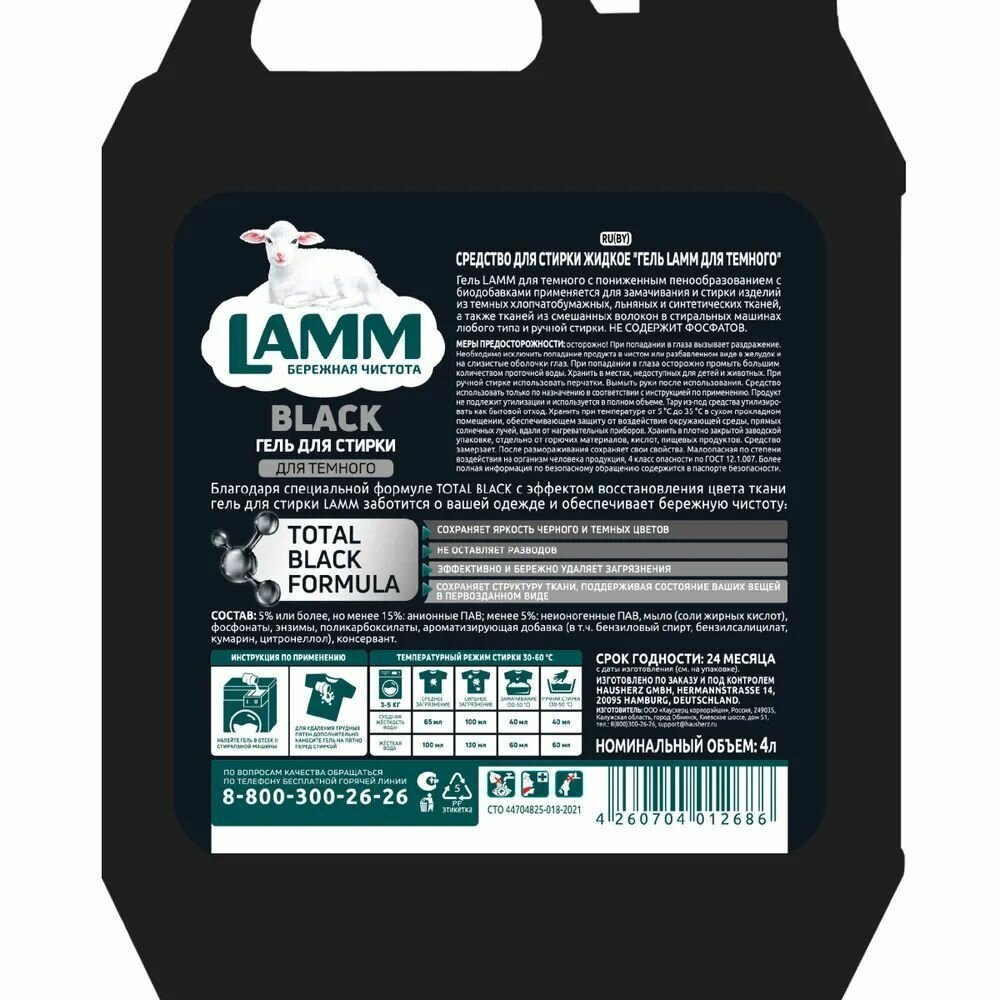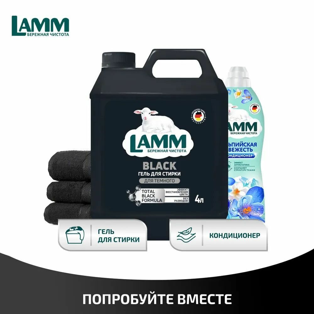 Купить LAMM Black Гель для Стирки Черного и Темного Белья, Бесфосфатный, 4 л