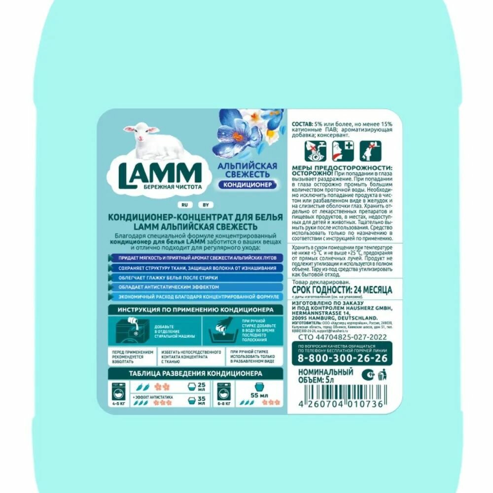 Купить LAMM Альпийская Свежесть Кондиционер для Белья Универсальный, Бесфосфатный, 5 л