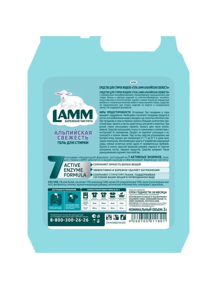 Гель для стирки Lamm Альпийская свежесть 1.95 л