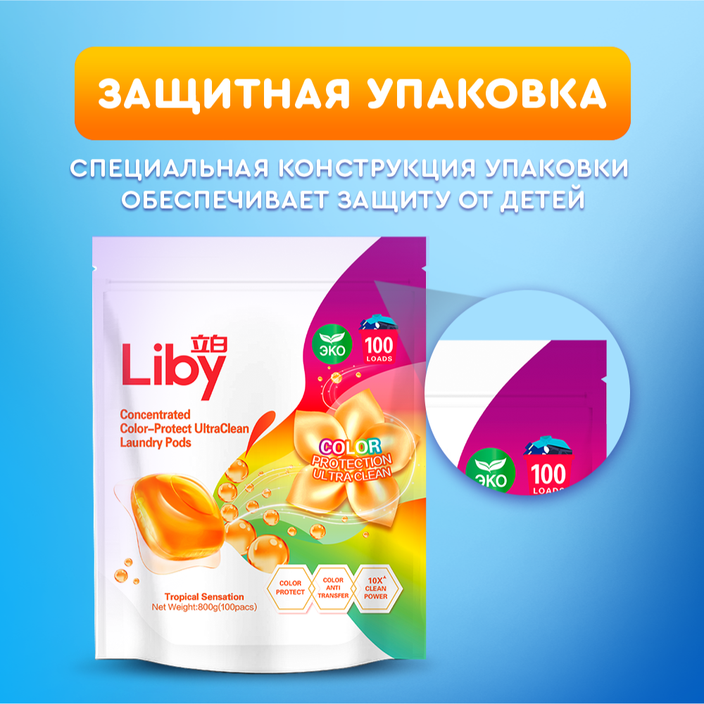 Купить Капсулы для стирки Liby 3в1 антибактериальные против пятен, формула защиты цвета, концентрат с кондиционером, 100 шт.