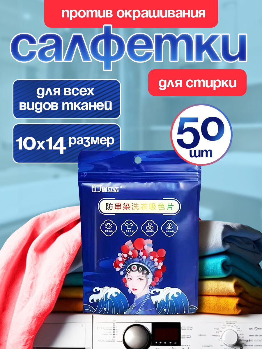 Салфетки для стирки белья, средство против окрашивания одежды, 50 шт интересное: