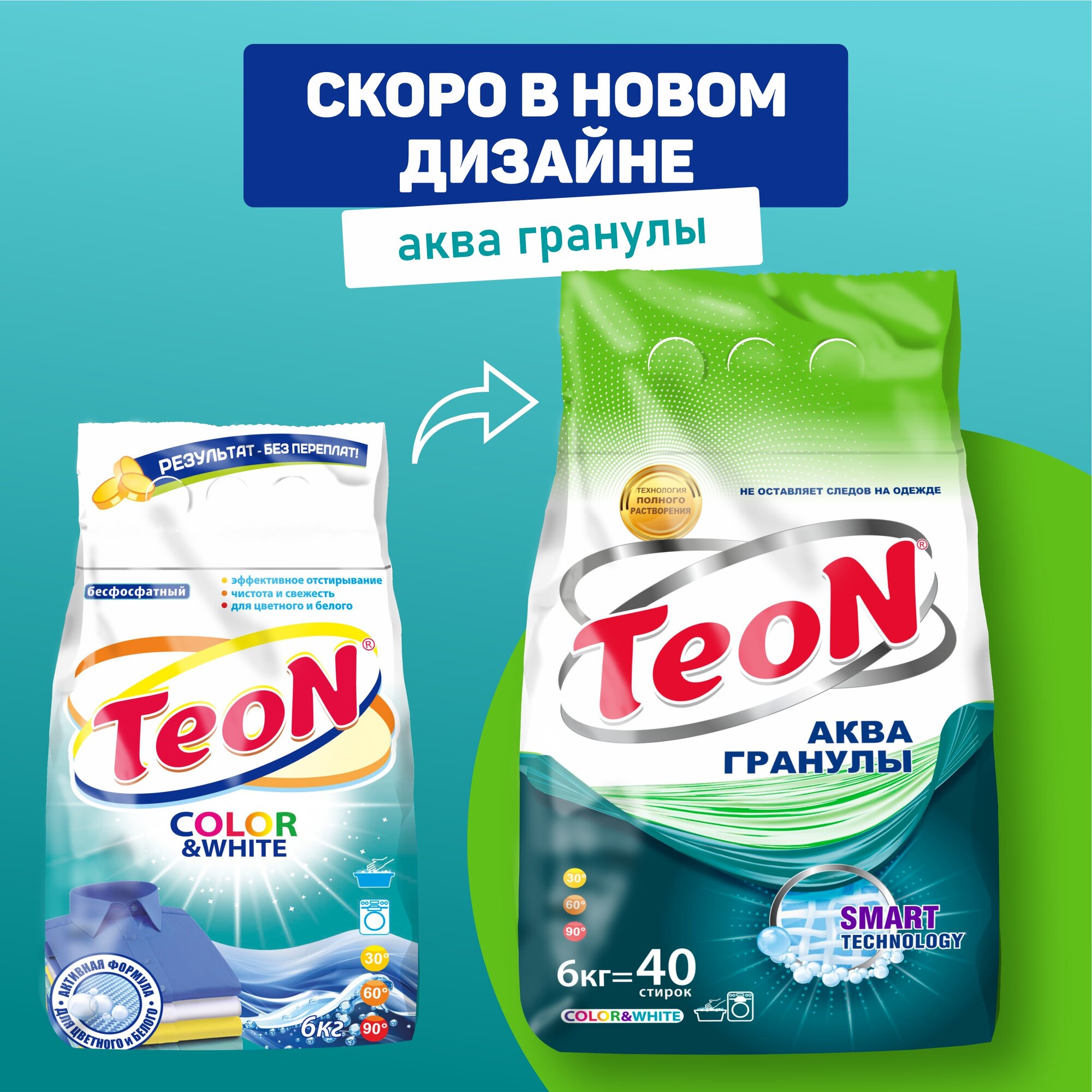 Порошок стиральный автомат Teon Color&White, 66 стирок, 6 кг интересное:
