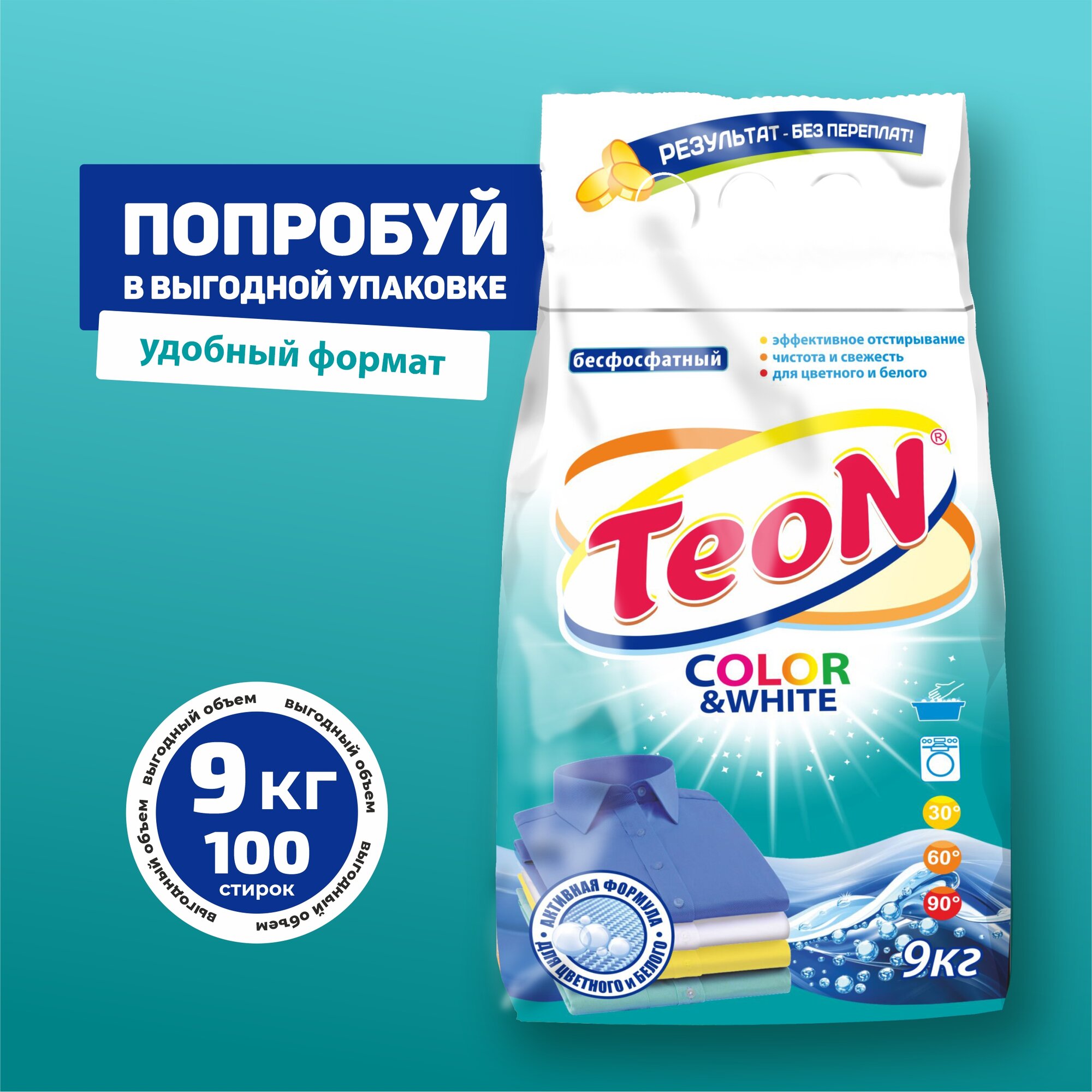 Стиральный порошок для всех типов стирки 9 кг TEON Color&Wh