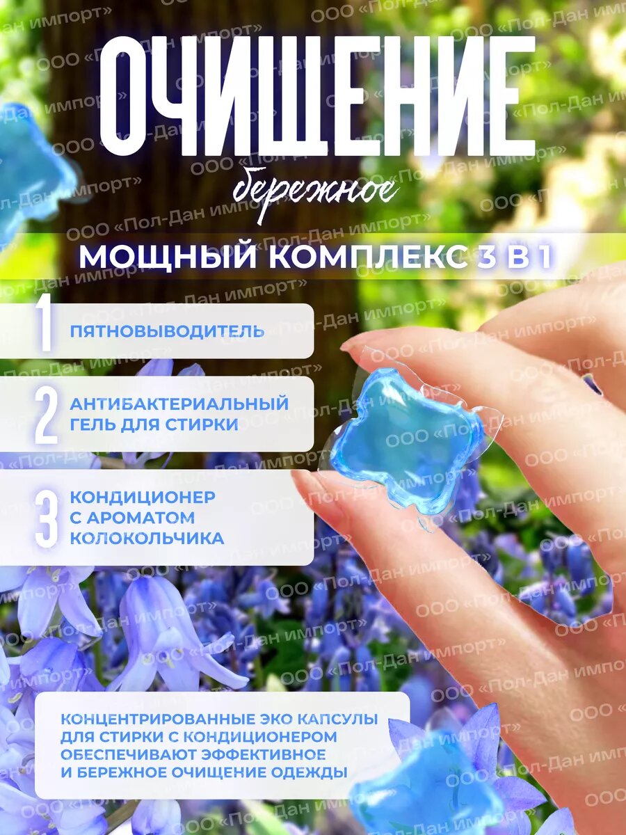 JIELEFANG, Капсулы для стирки с кондиционером, колокольчик полевой, концентрат 3в1, 100 шт. интересное: