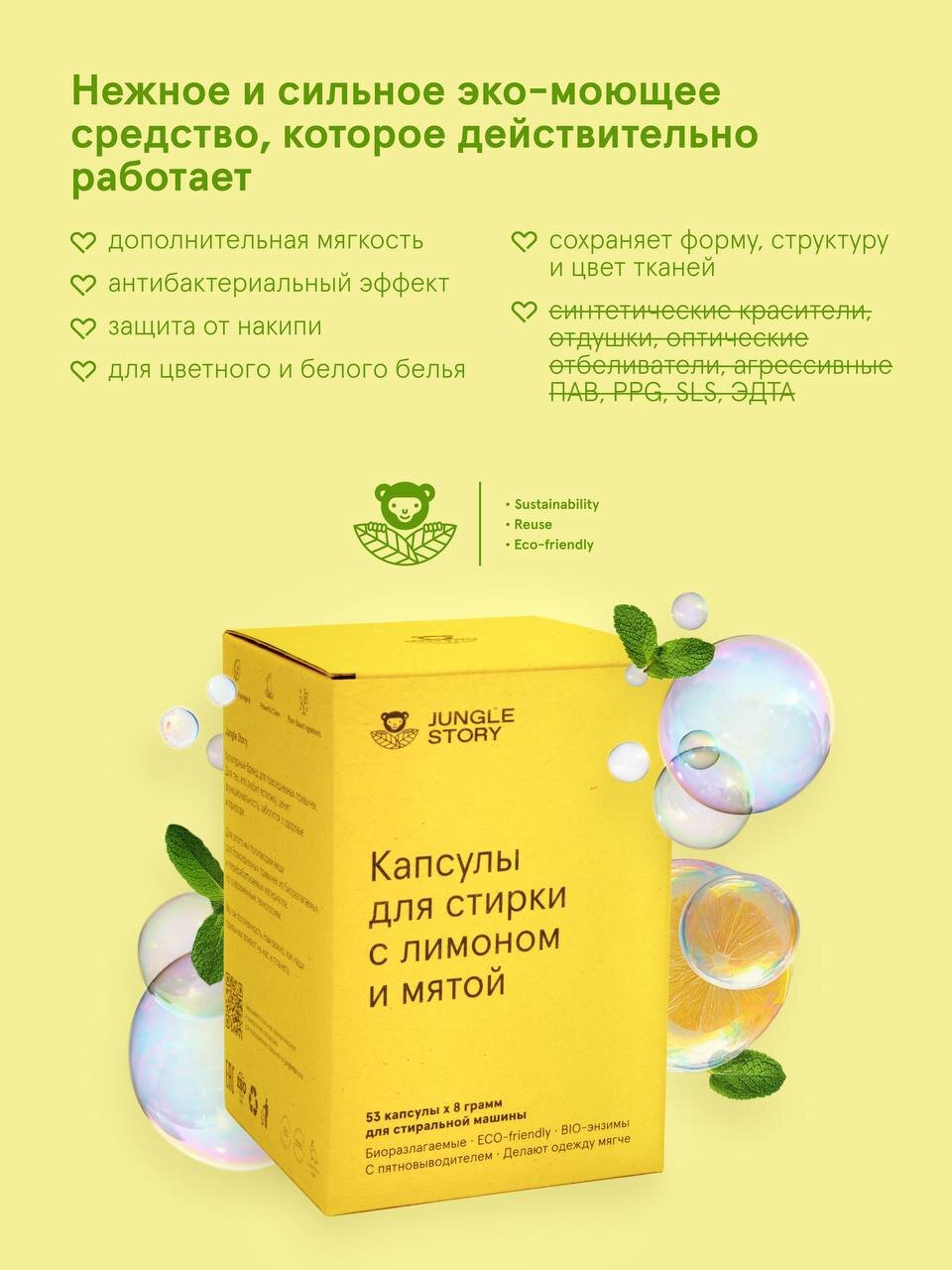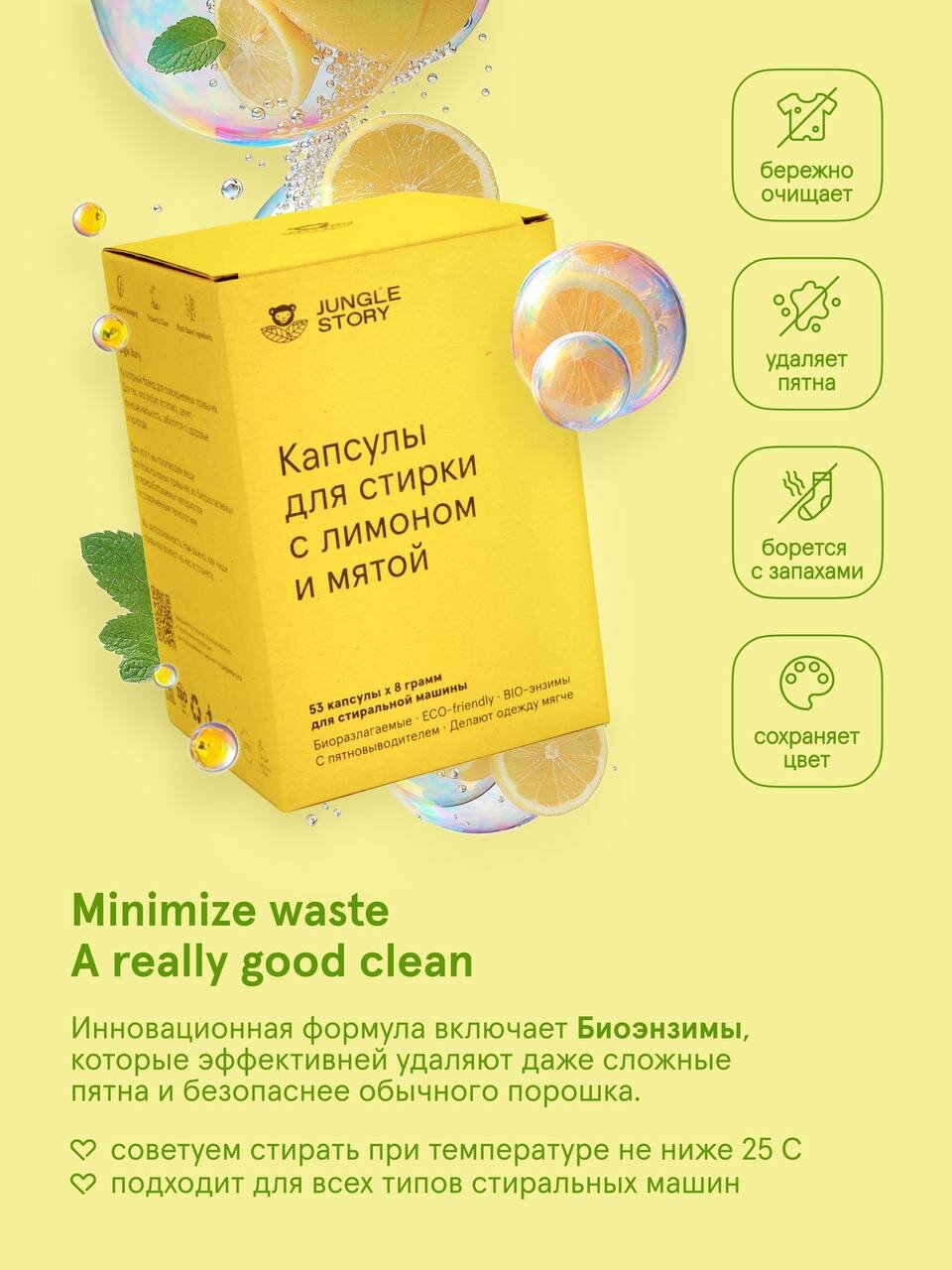 Купить Капсулы Jungle Story для машинной стирки "Лимон и Мята" - 53 штуки