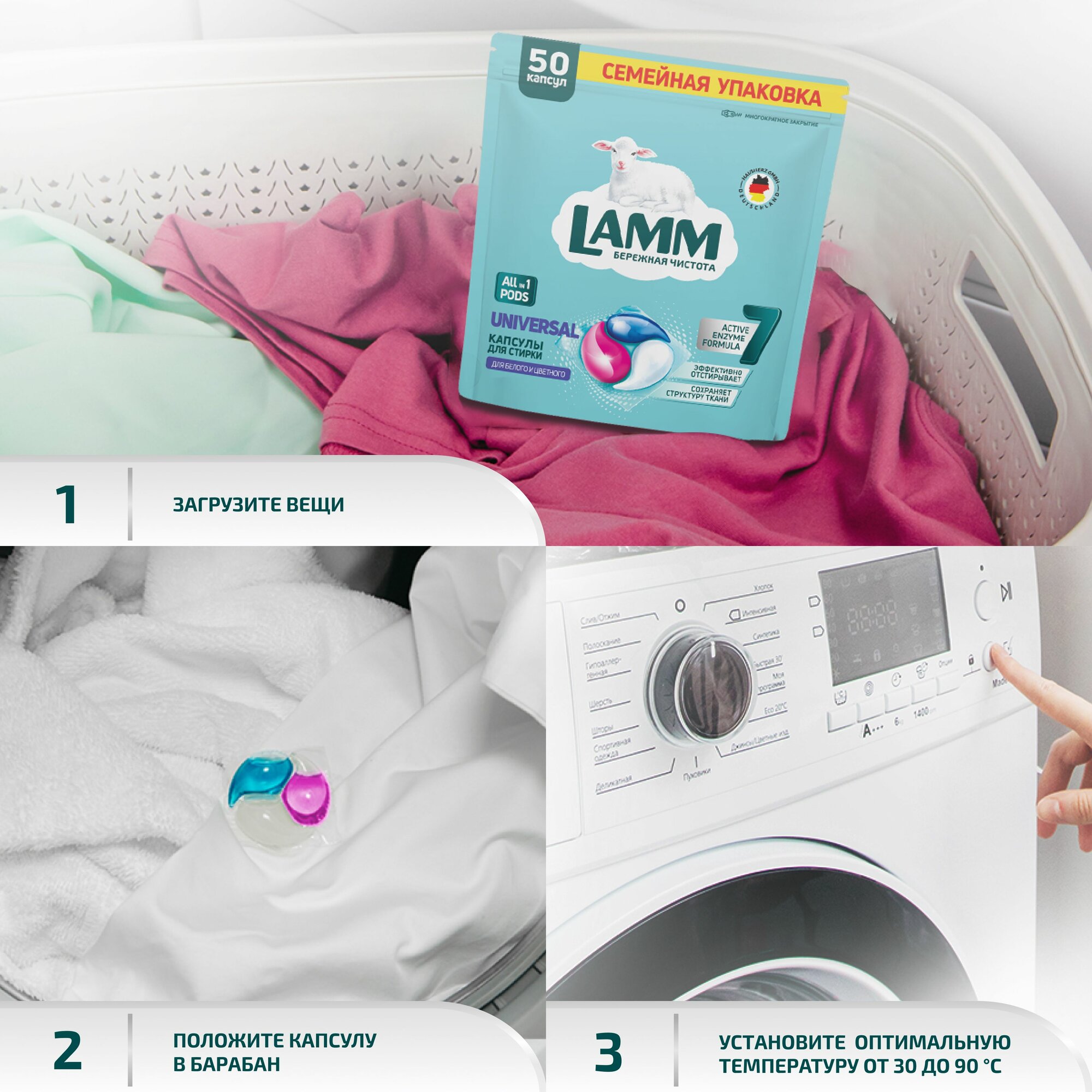 Купить LAMM Universal капсулы для стирки белого и цветного белья бесфосфатные 50 шт