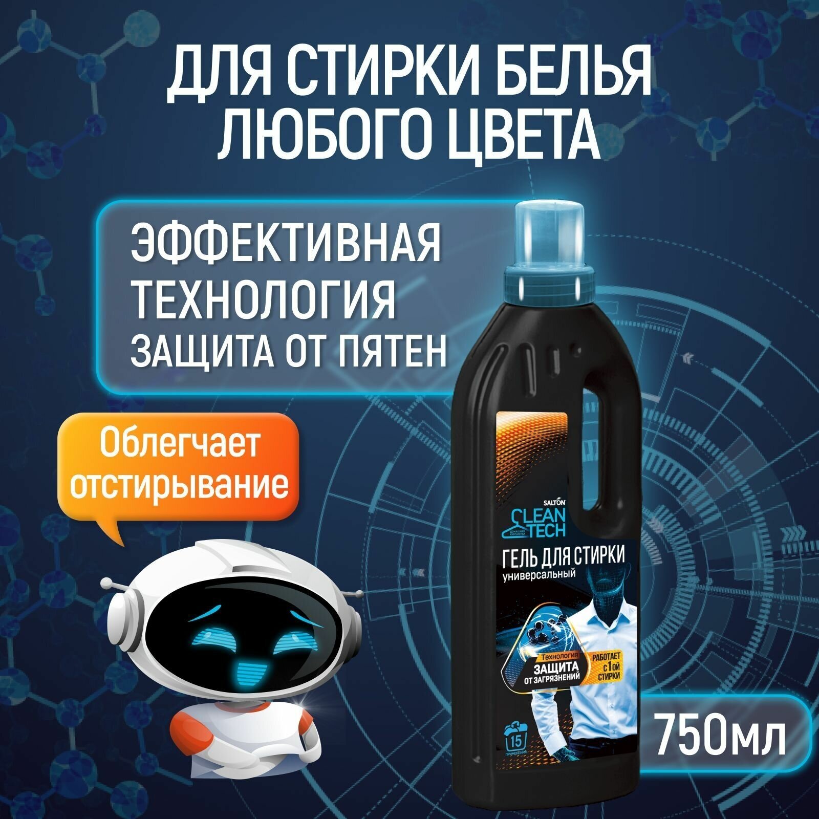 Гель для стирки Salton CleanTech Универсальный 1000 мл Защита от загрязнений, Домашняя химчистка интересное: