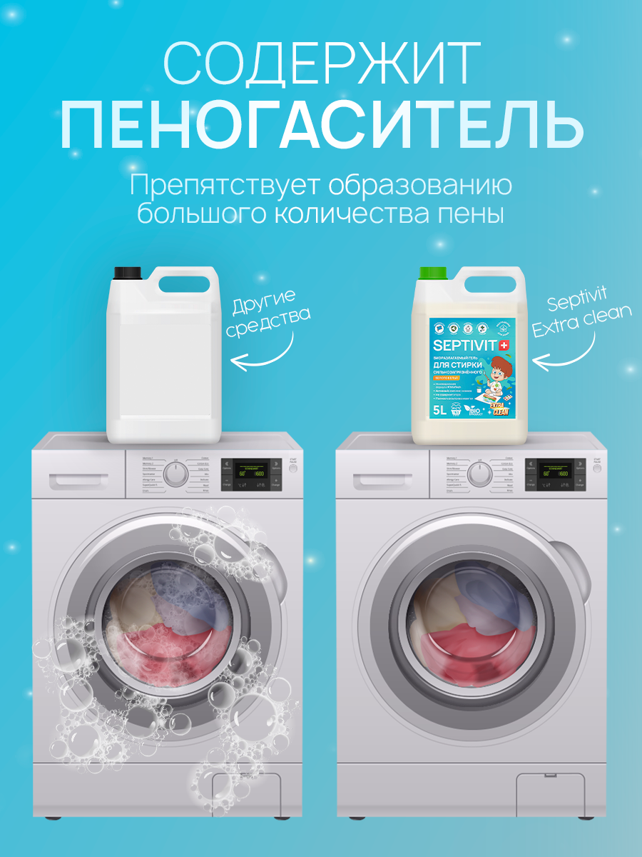 Гель для стирки Septivit Extra Clean, для сильнозагрязненных тканей, универсальный, с энзимами, канистра, 5 л