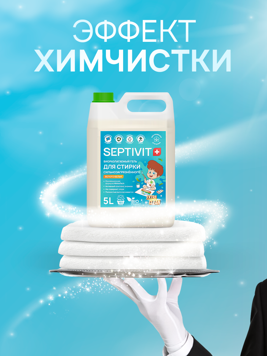СохранитьГель для стирки Septivit Extra Clean для сильнозагрязненных белых тканей, канистра, 5 л интересное: