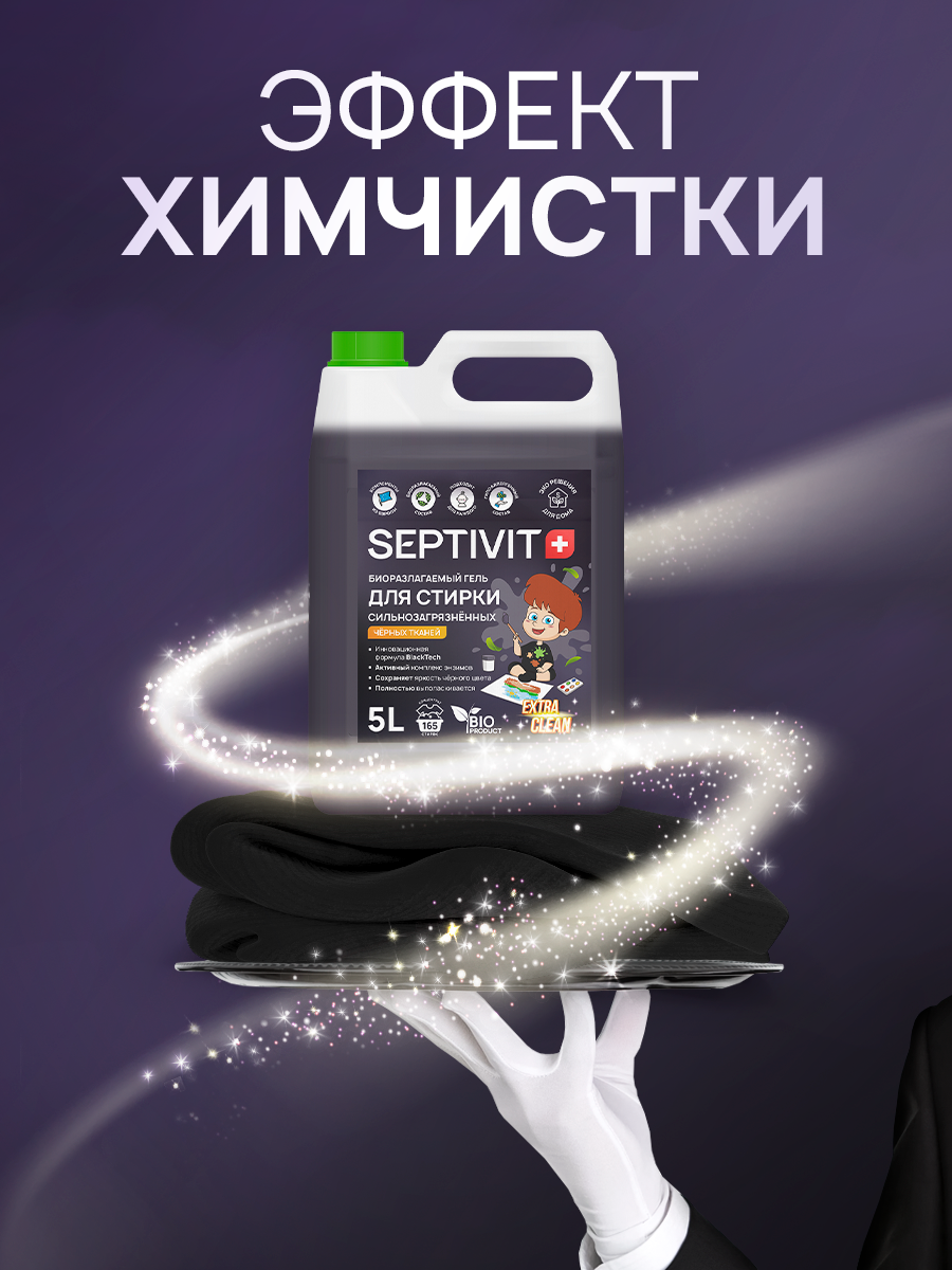 СохранитьГель для стирки Septivit Extra Clean для сильнозагрязненных черных тканей, с энзимами, канистра, 5 л интересное: