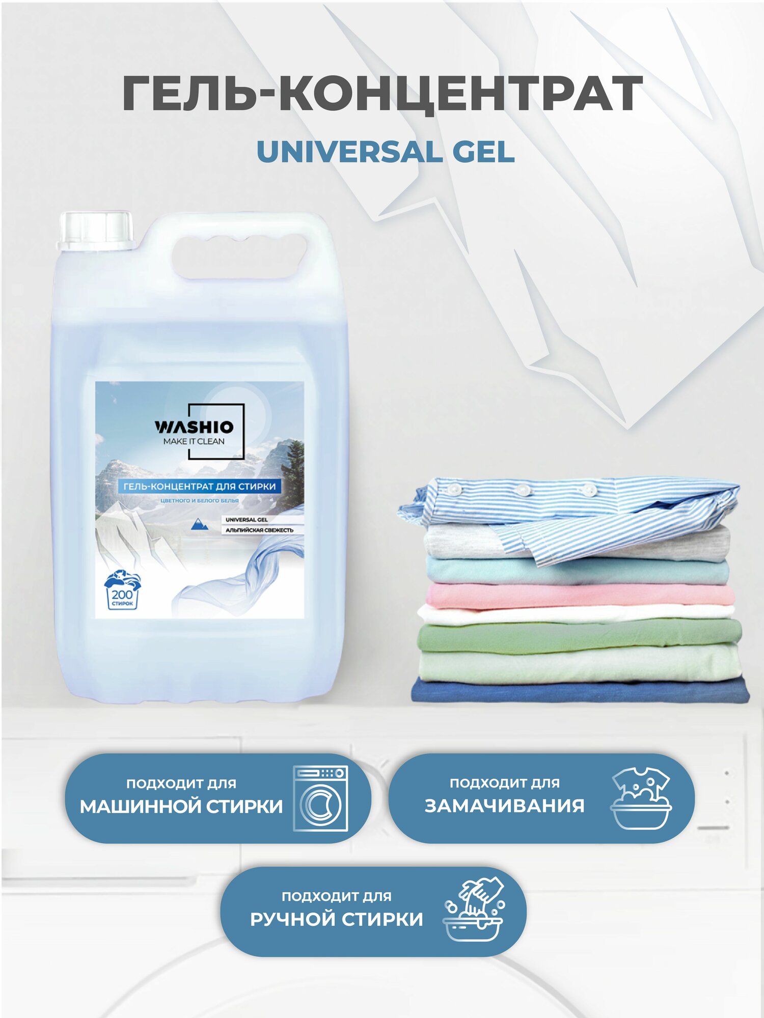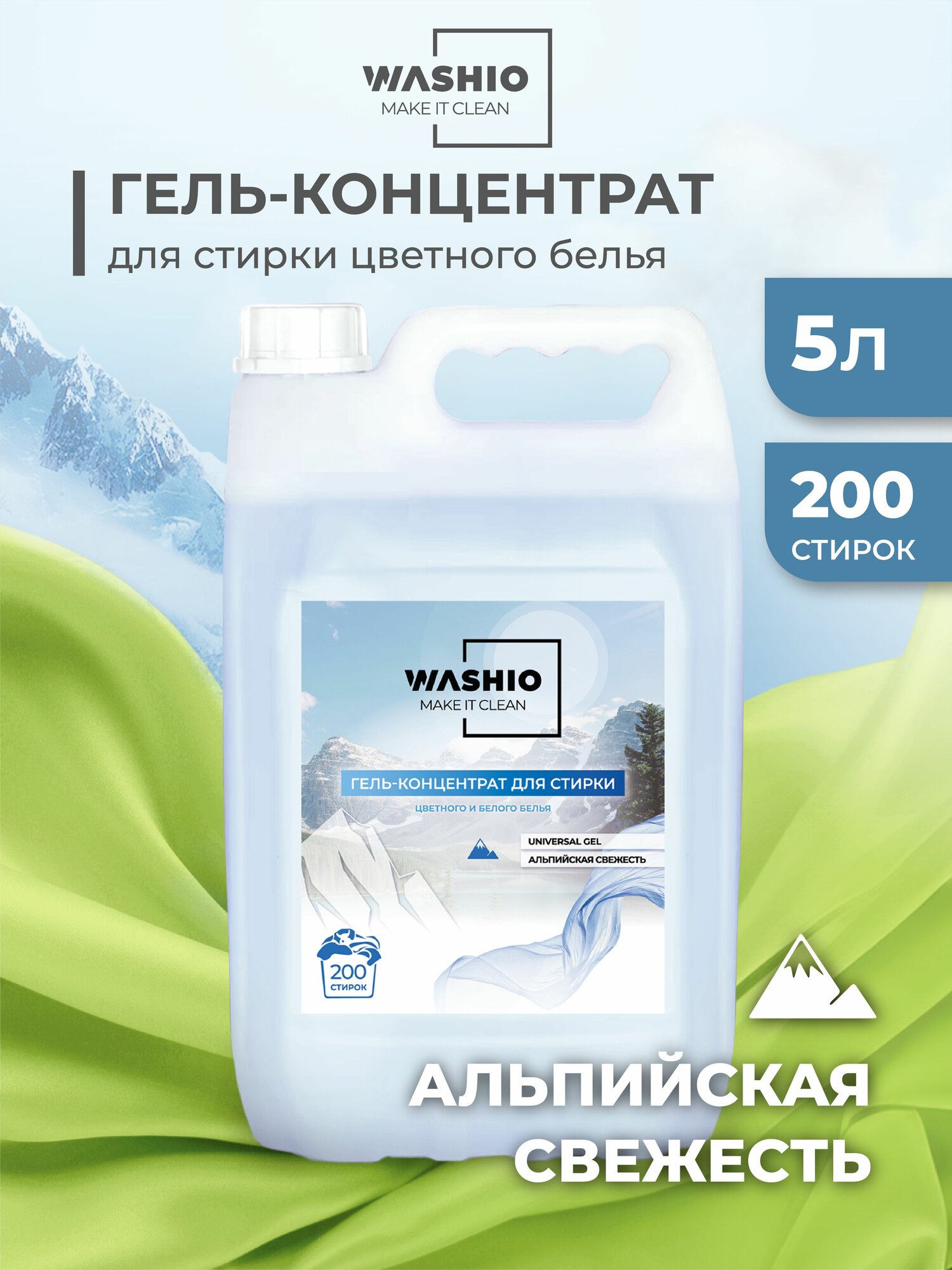 Гель-концентрат для стирки 5л WASHIO Альпийская Свежесть интересное: